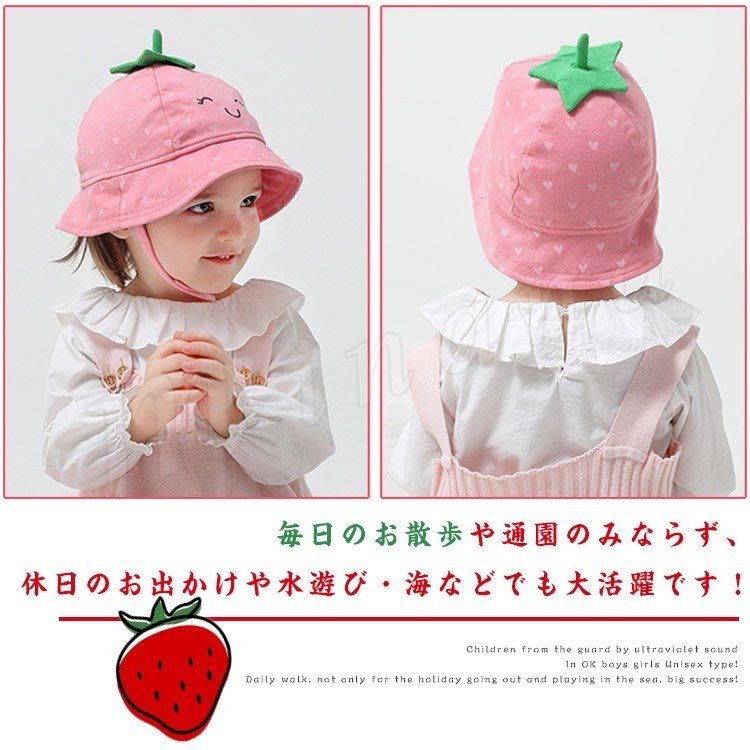 イチゴ 苺 UVカット帽子 キッズ 帽子 子供用 帽子 サファリハット 赤ちゃん ベビー ハット 女の子 男の子 UVカット ハット ジュニア