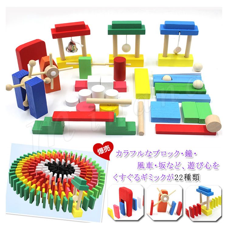 22種類 ドミノ倒し ギミック 仕掛け 積み木 天然木製 ブロック カラー