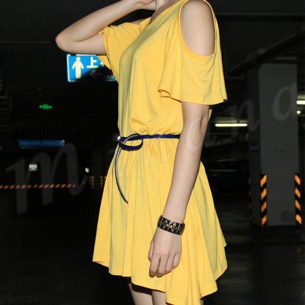 肩開きがCUTEなチュニックワンピの登場♪肩あきカットワンピース 肩空き ワンピース 半袖 チュニック チュニックワンピ 肩出し ZOKO