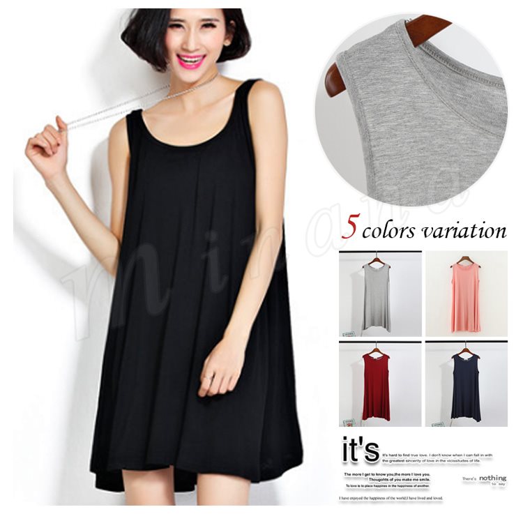 ワンピース レディース 膝丈 ワンピース 大きいサイズ 無地 フレアワンピース ゆったり ノースリーブ トップス キレイめ 2018春夏新作