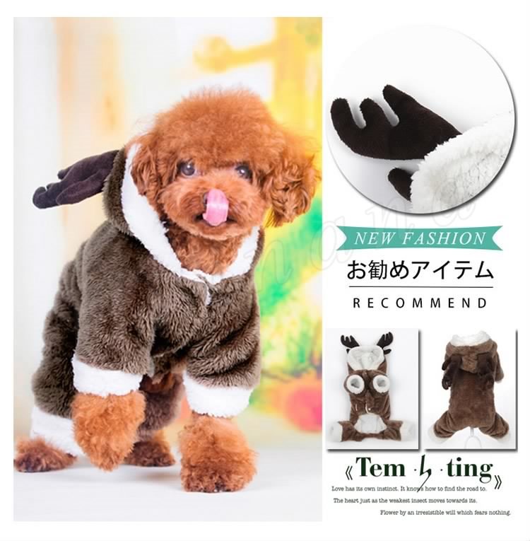 犬 服 犬服 小型犬 クリスマスウエア トナカイ 着ぐるみ カバーオール つなぎ ドッグウエア コスプレ XS S M L XL