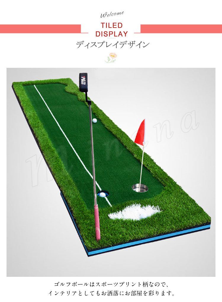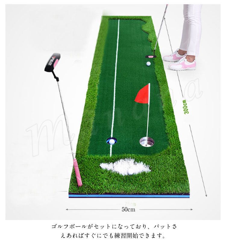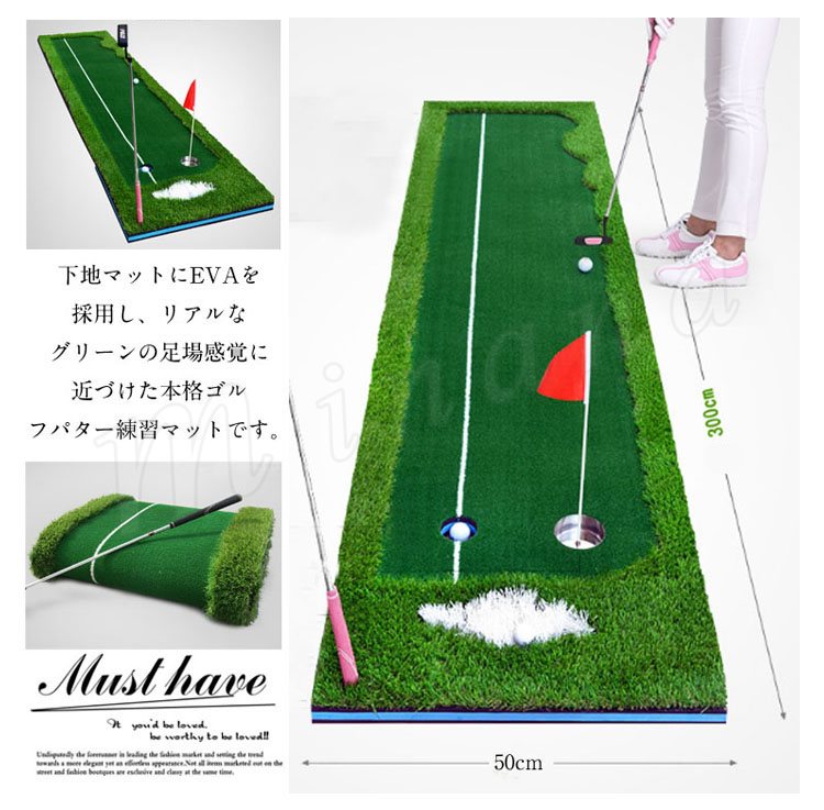 本格派パターマット ゴルフ パター 練習 屋内 屋外 静音 グリーン 300×50cm