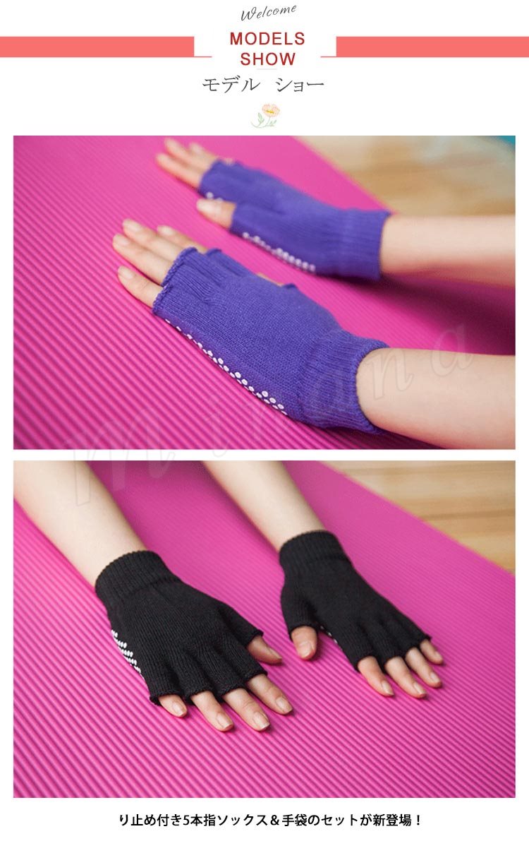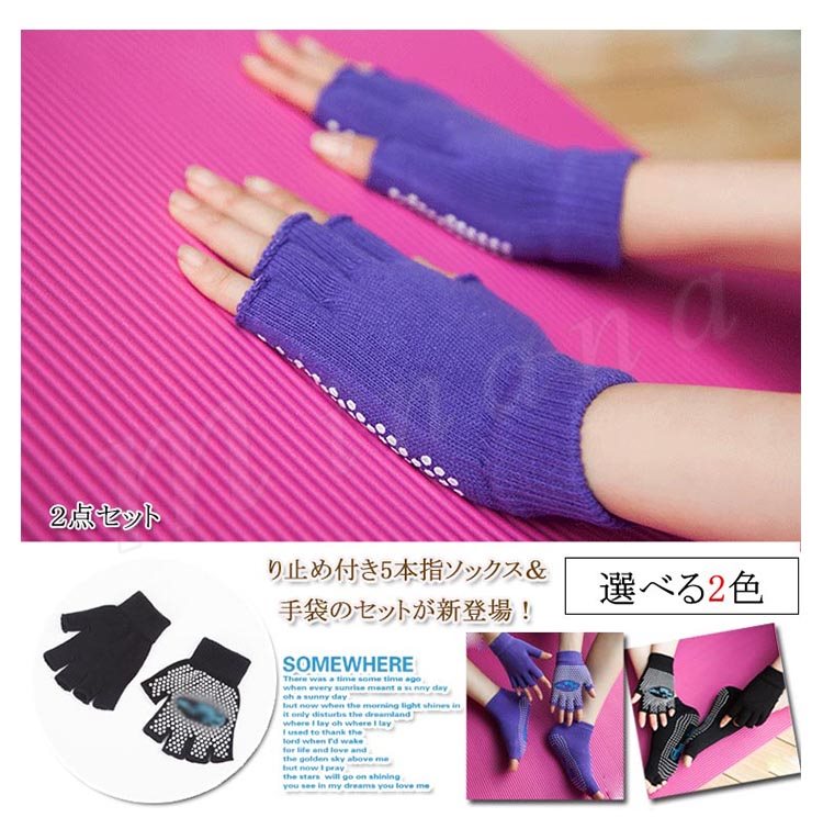 2点セット 5本指ソックス ヨガソックス ヨガグローブ 5本指手袋 スポーツウェア レディース 滑り止め付き フィットネス ダンス ヨガ シリ