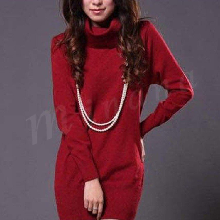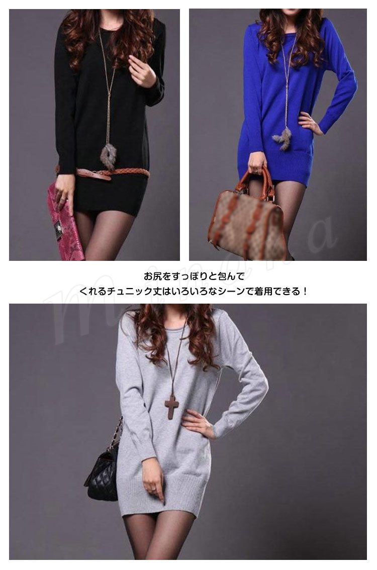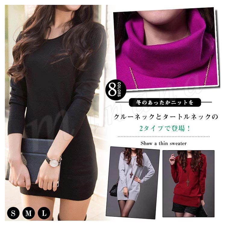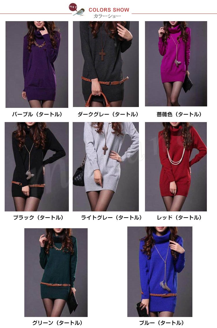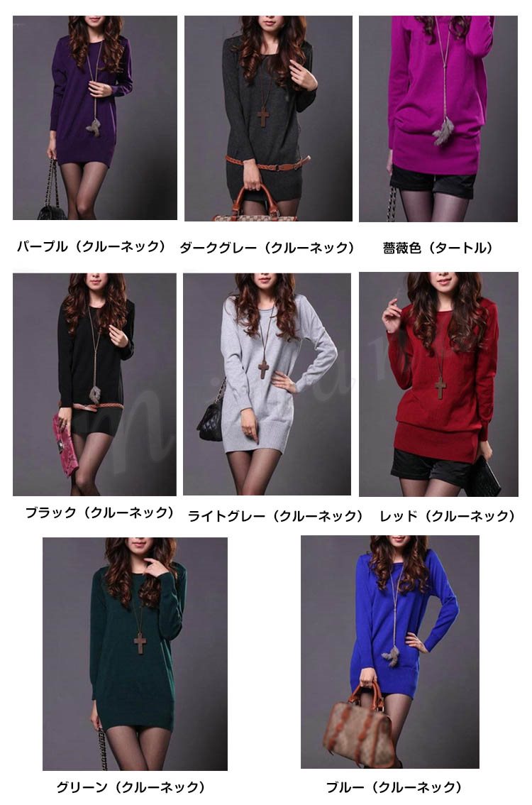 冬らしいタートルネックタイプ追加!ニットワンピース ニット ワンピ ワンピース レディース 無地 長袖 シンプル チュニック リブ ゆったり