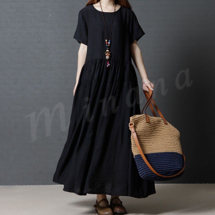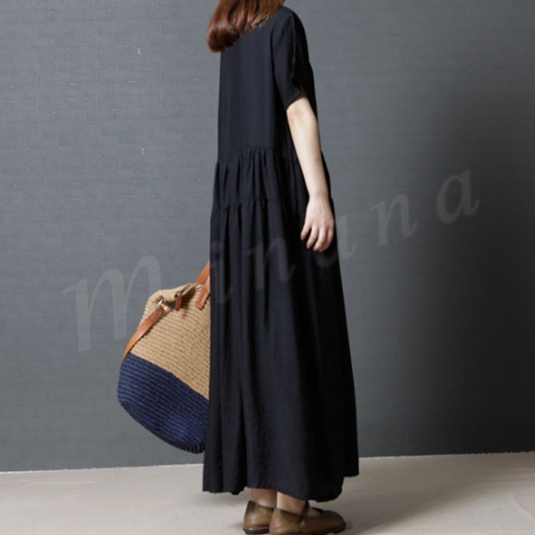 レディース ワンピース マキシワンピ マキシ丈 ロング リゾート フレア フレアワンピース 半袖 Aライン 体型カバー 大きいサイズ