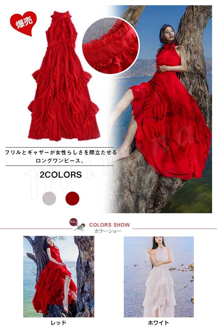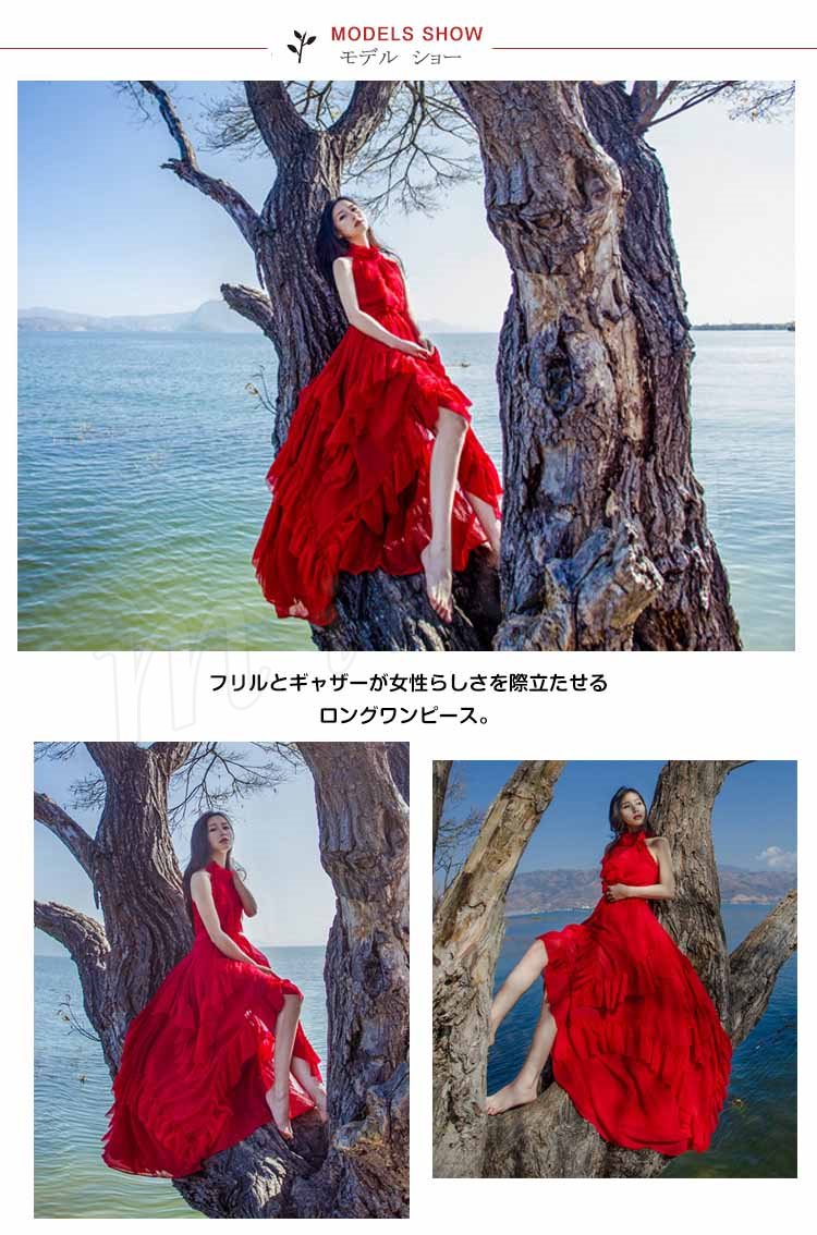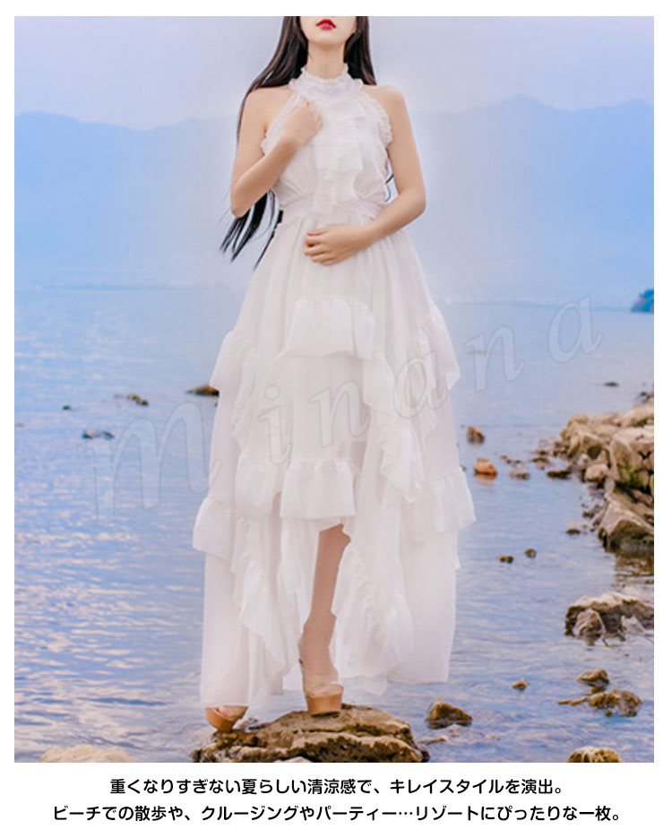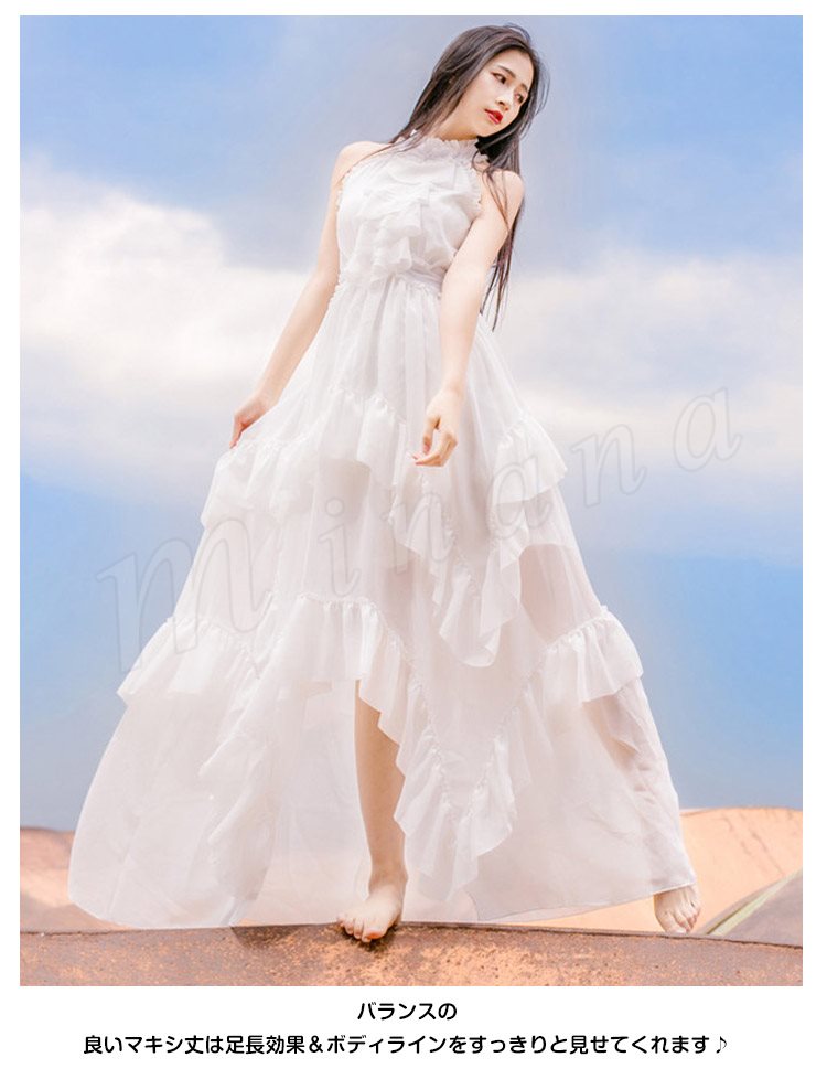 妖精のように美しい。ビーチ ロング ワンピース マキシワンピ マキシ ワンピース ロングドレス リゾート マキシワンピース ノースリーブ セク