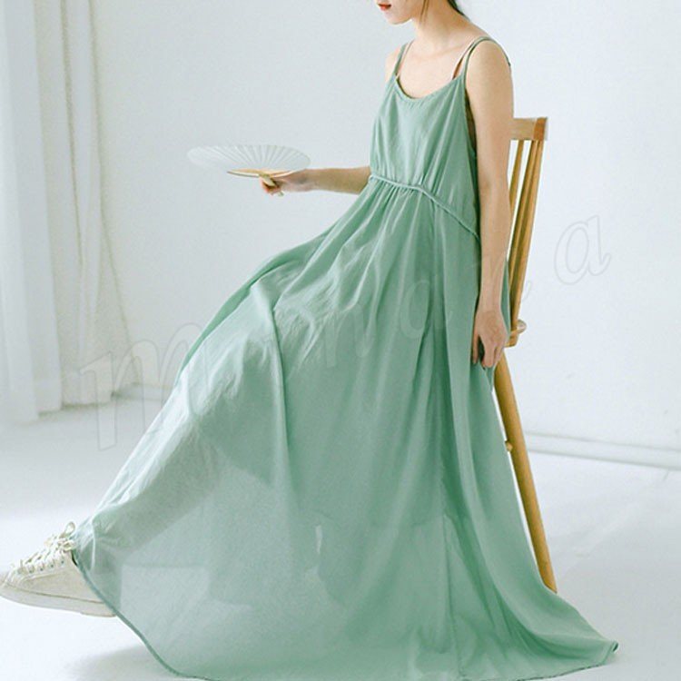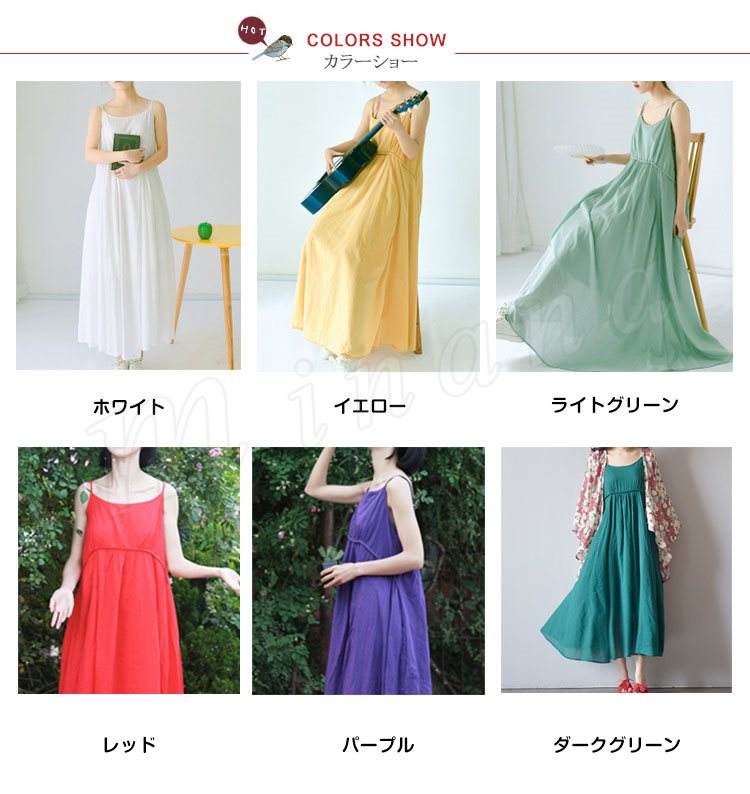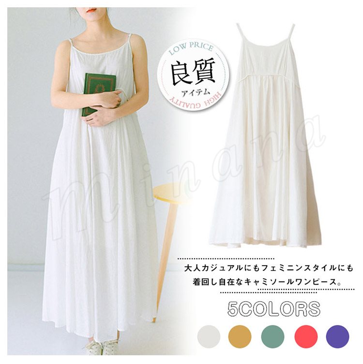 キャミソールワンピース レディース ワンピース ロング キャミワンピ マキシワンピ ノースリーブ 夏ワンピース 夏ワンピ 綿 コットン 薄手