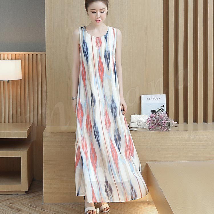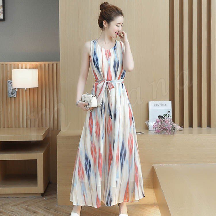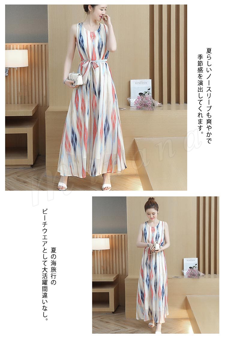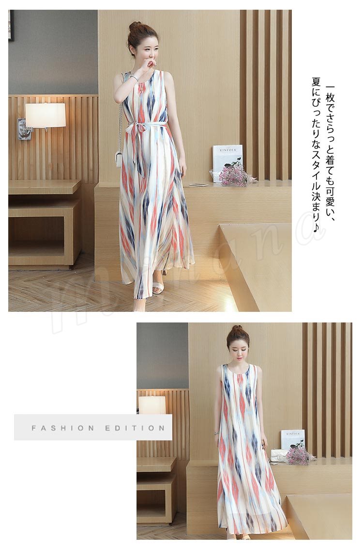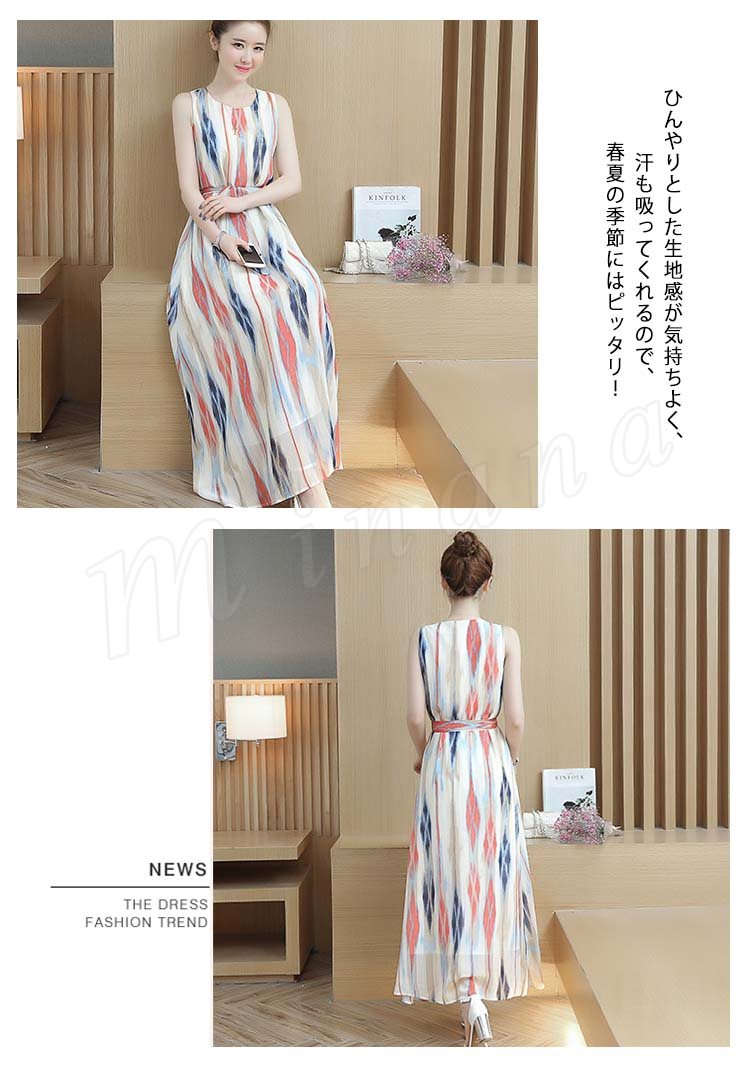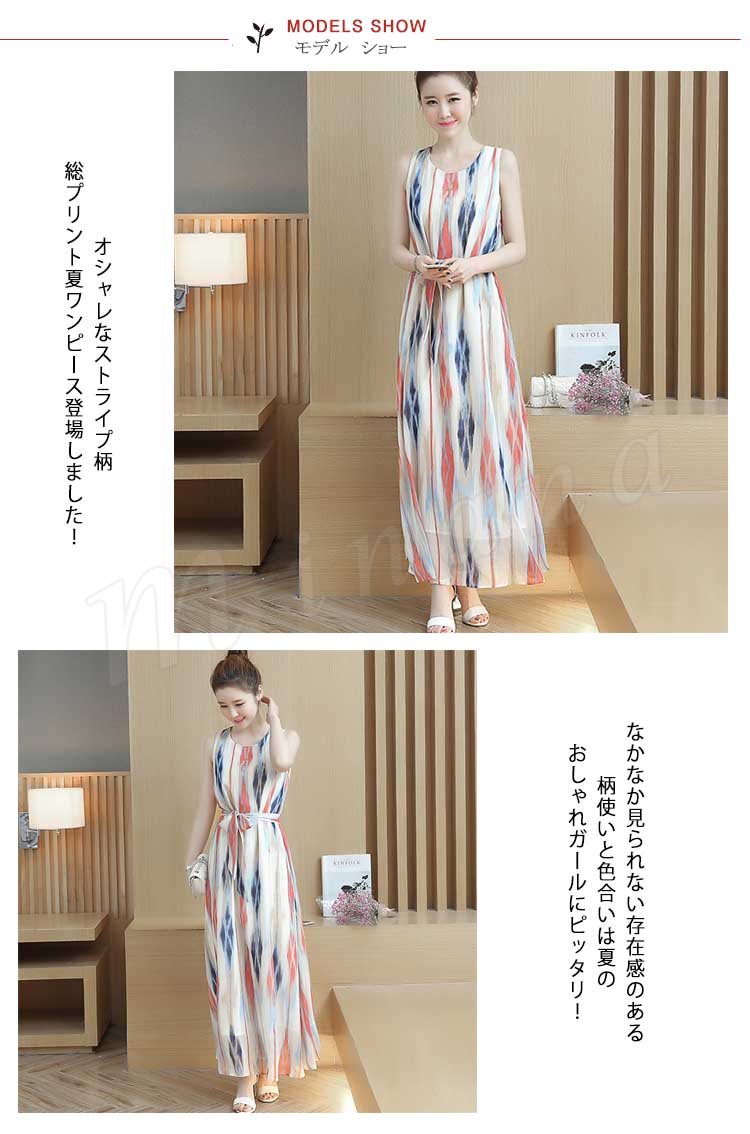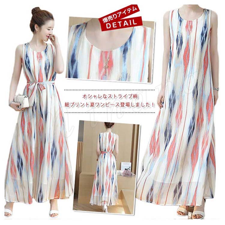 2017春夏大人気item!ストライプロングワンピ 夏ワンピース ワンピース ノースリーブ マキシワンピ マキシワンピース ロング丈 ノースリ