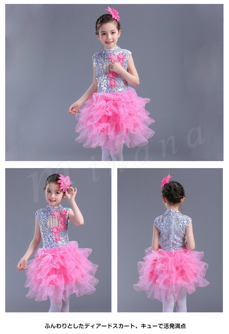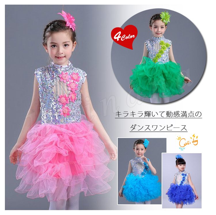 110身長105-114 120身長115-124 130身長125-134 140身長135-144 150身長145-154 160身長155-164キラキラ輝いて動感満点のダンスワンピース