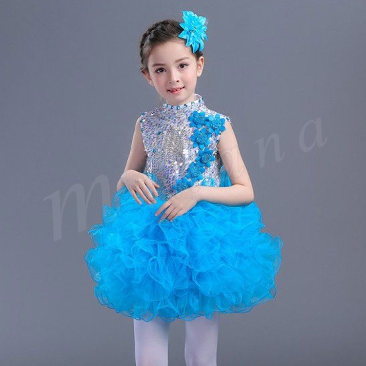 キラキラ輝くダンスワンピース 女の子ワンピース ガールズワンピース プリンセスドレス パーティドレス ディアードスカート 出演服 ダンス服 舞