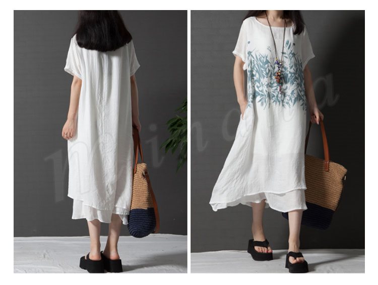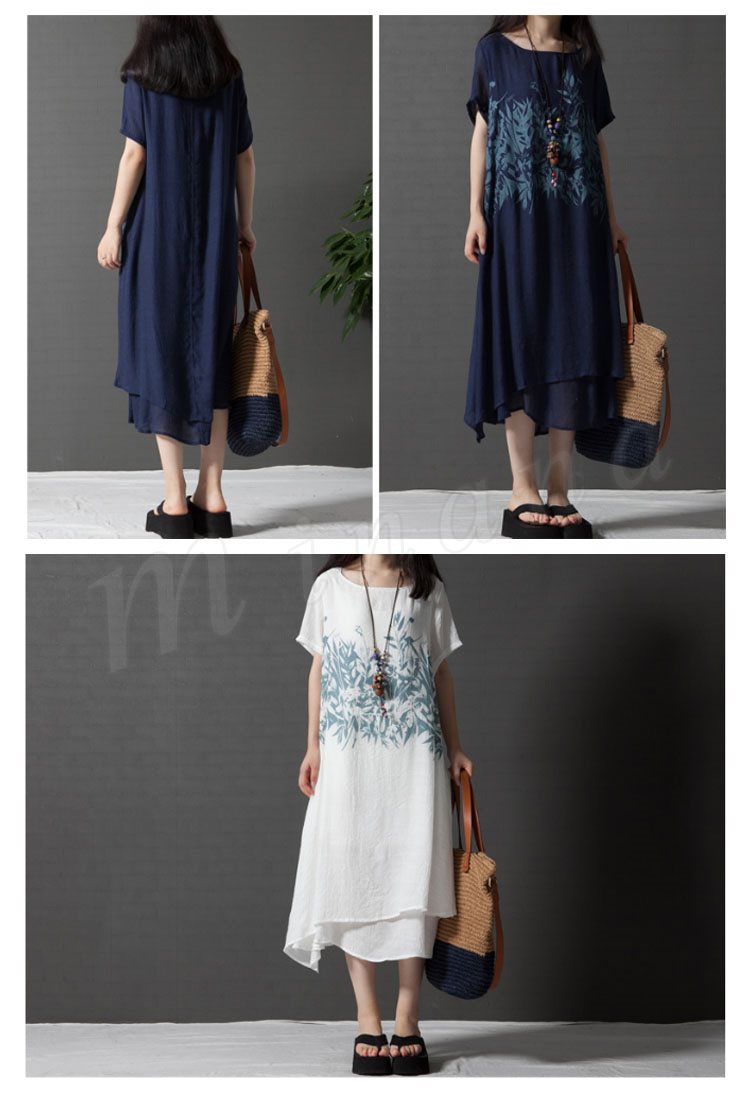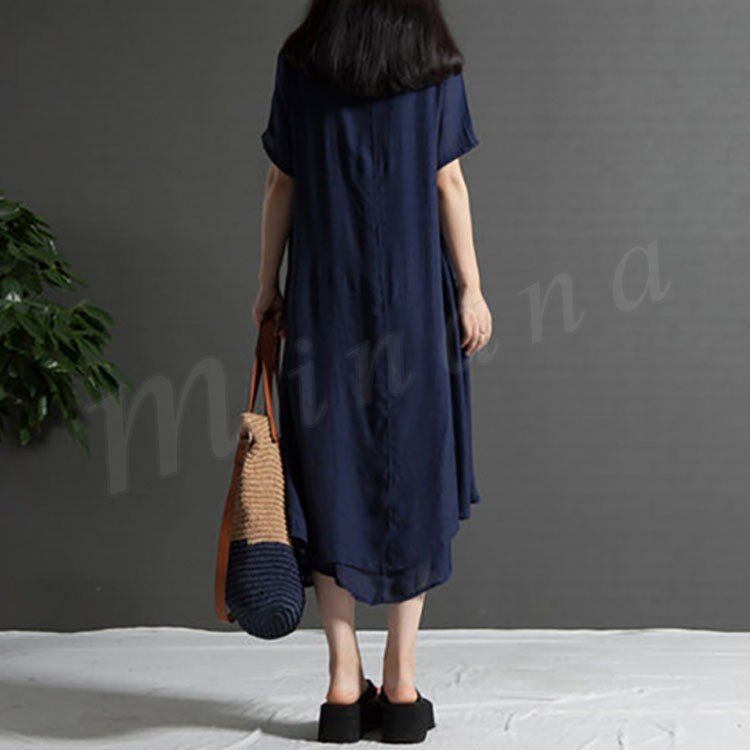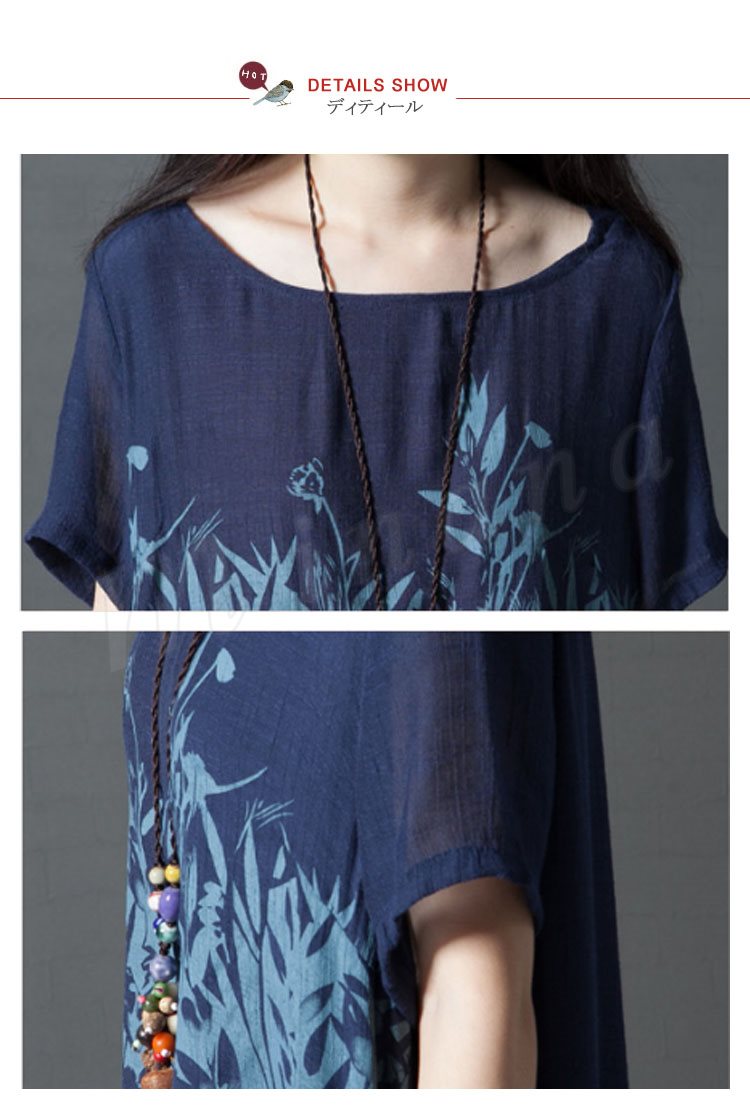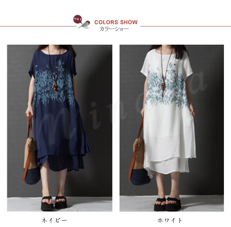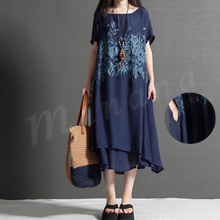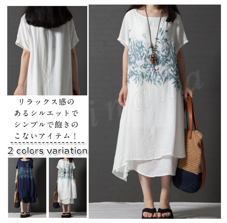 レディース 半袖 ワンピース チュニック Aライン フレアワンピース プリント 柄物 ゆったり 膝丈 シンプル 無地 大きいサイズ 2カラー 4サイズ