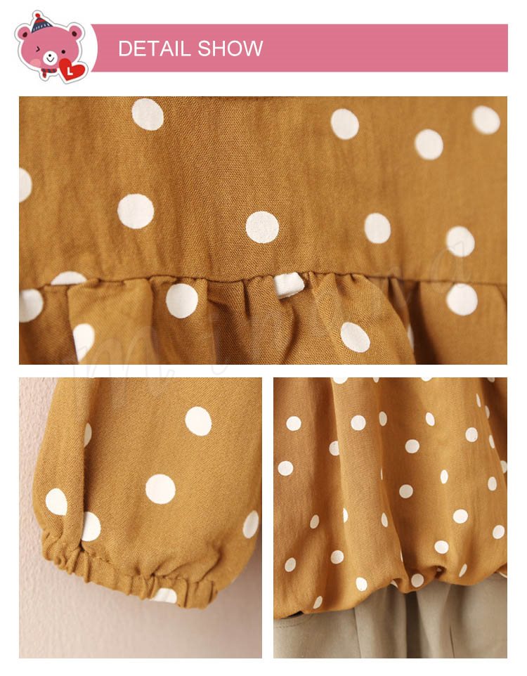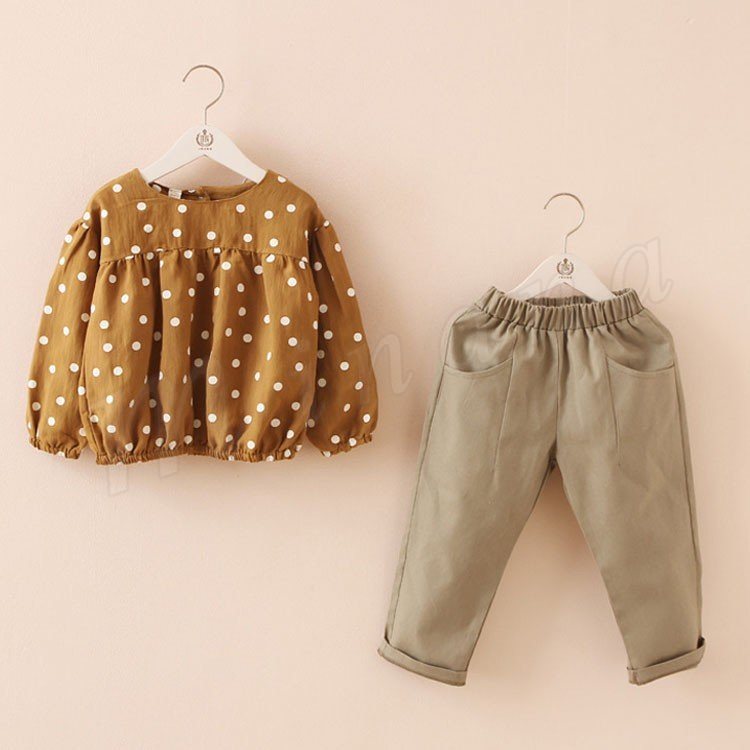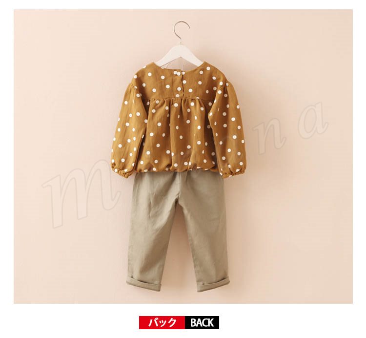 水玉柄ブラウス+パンツ 2点セット 女の子 子供 キッズ ジュニア 水玉柄 ブラウス シャツ 長袖 ロングパンツ