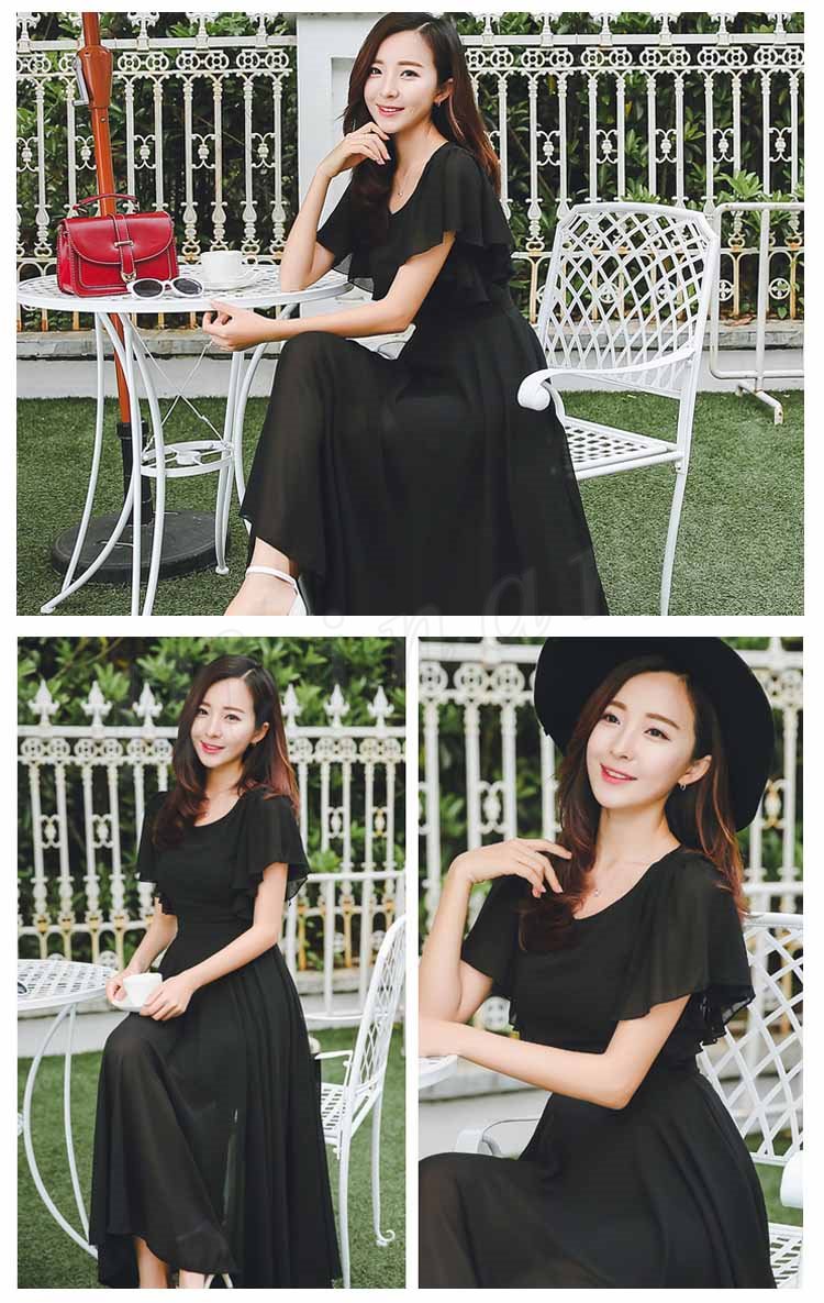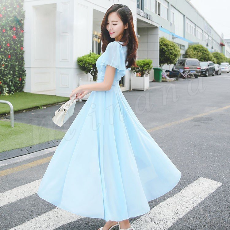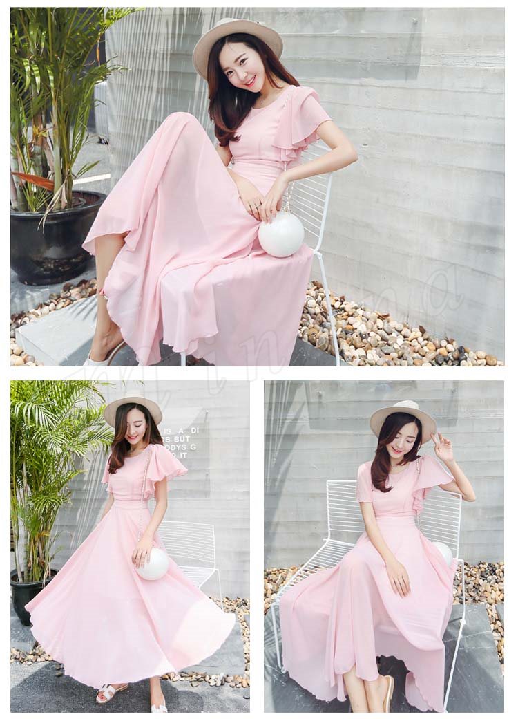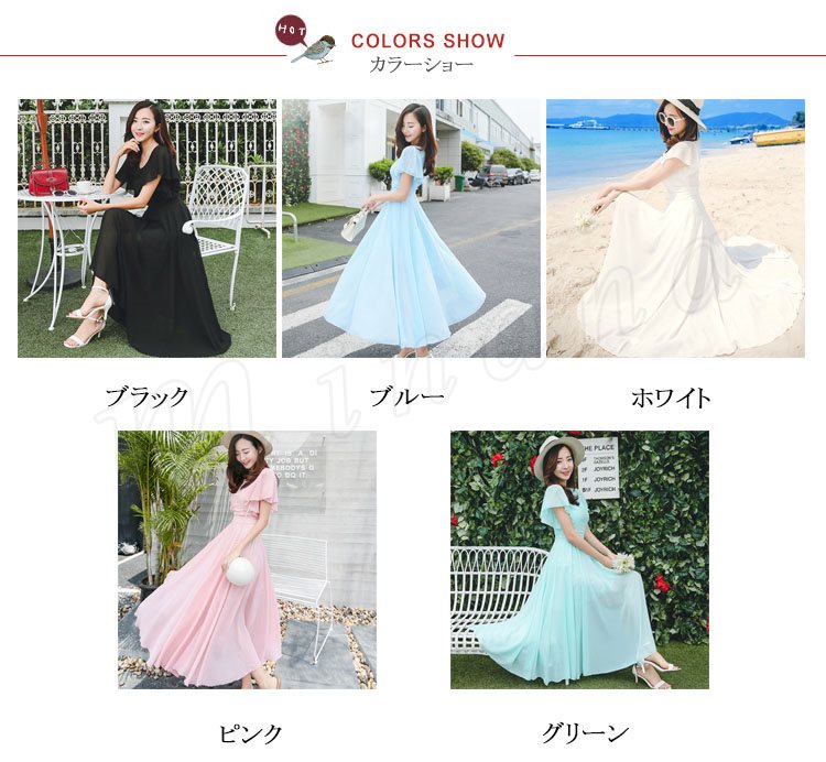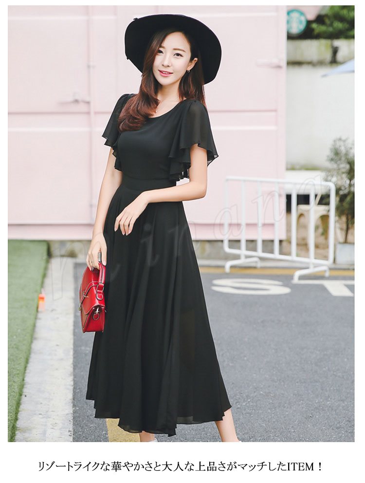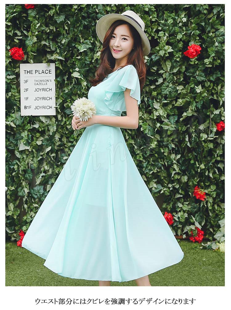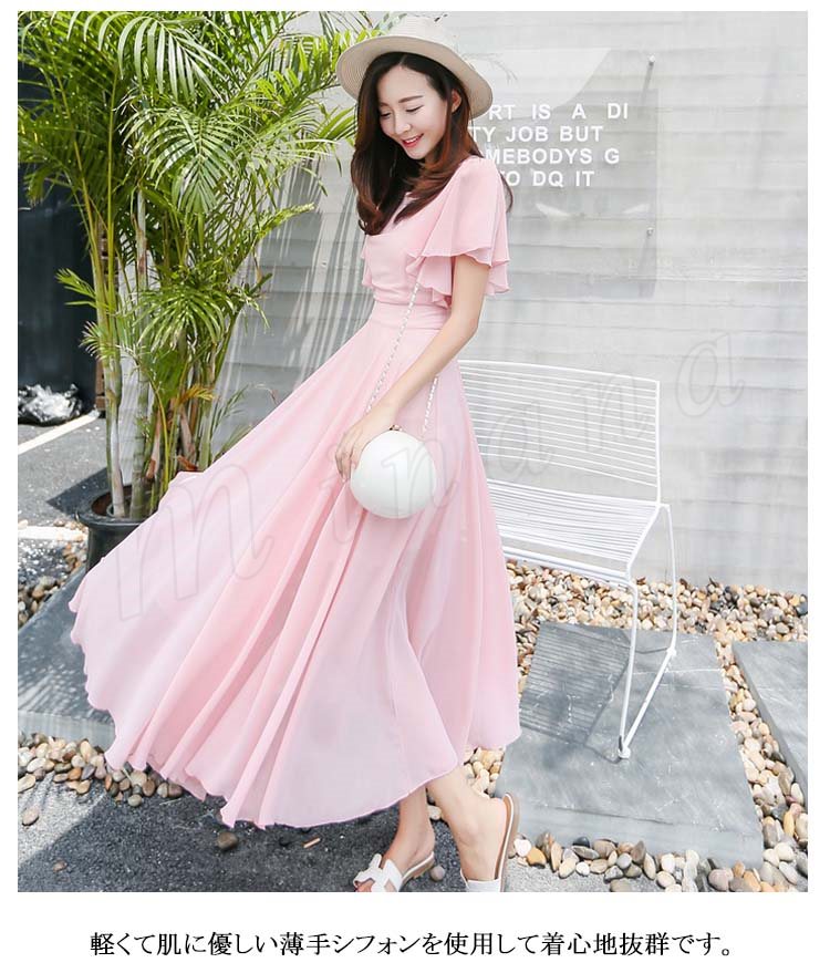 フレアワンピース ワンピース ロングワンピース レディース マキシワンピ マキシワンピース 無地 フレア袖 半袖 夏 フレア シフォン 大 Z