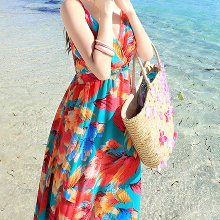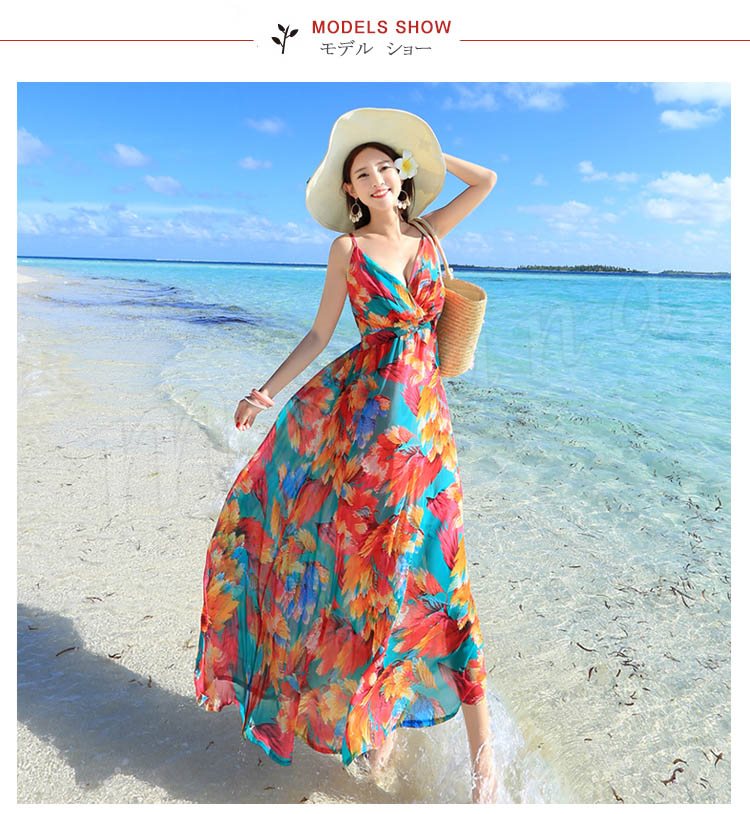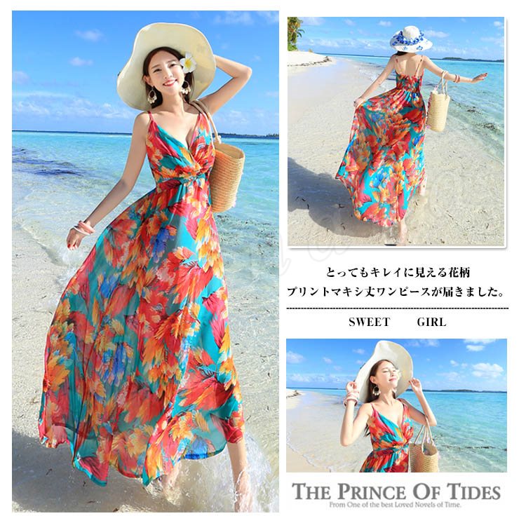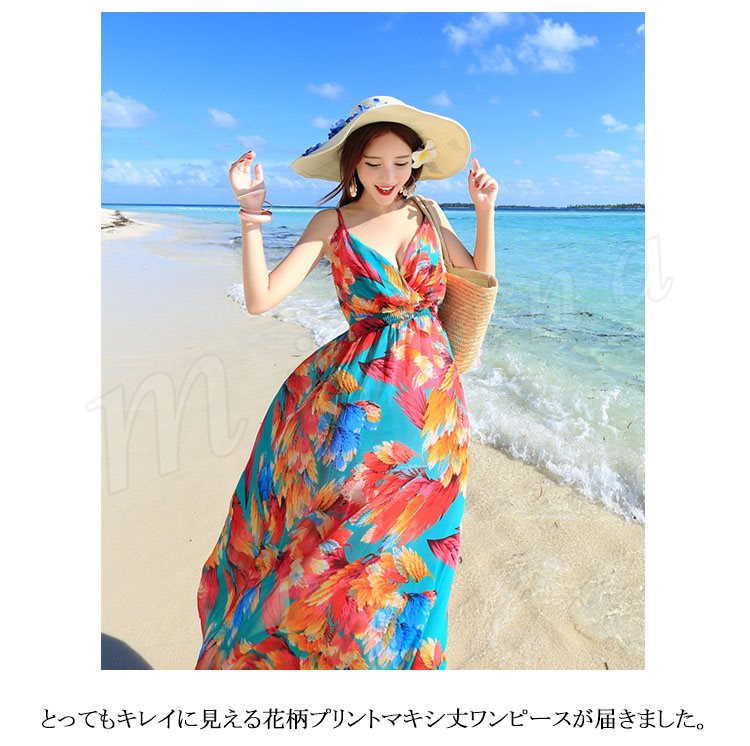 一気に明るくなる、華やかな1枚。Vネック リゾートワンピ 夏ワンピース 夏ワンピ 花柄 ワンピース 夏 シフォン マキシワンピース マキシワン