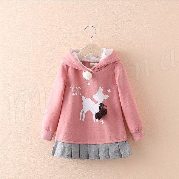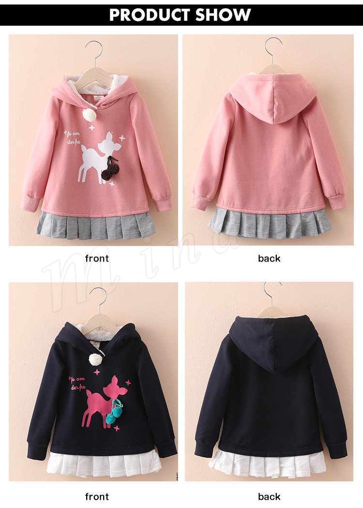 送料無料キッズ プルオーバー 長袖パーカ プリーツ 裏起毛 フード付き 長そで ギャザー フレア パーカアウター 女児 動物柄 厚地 切替 無地 子