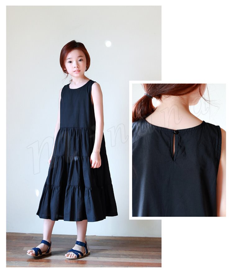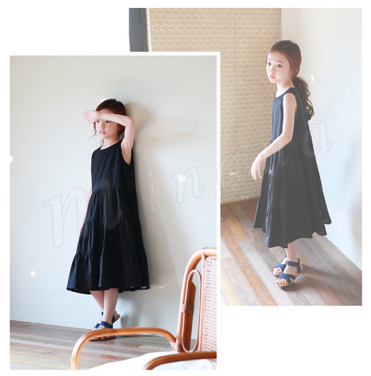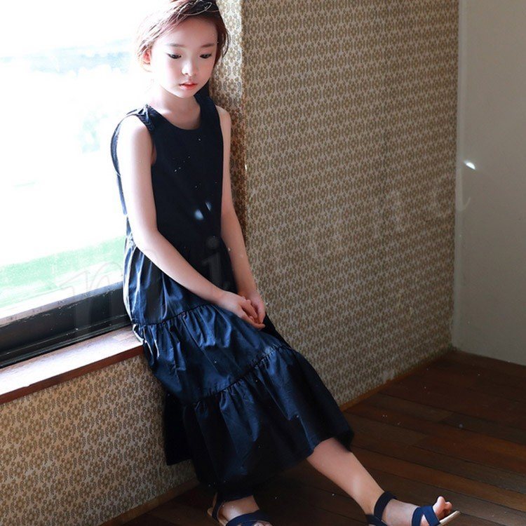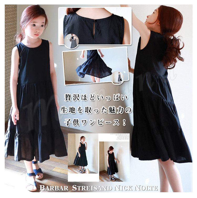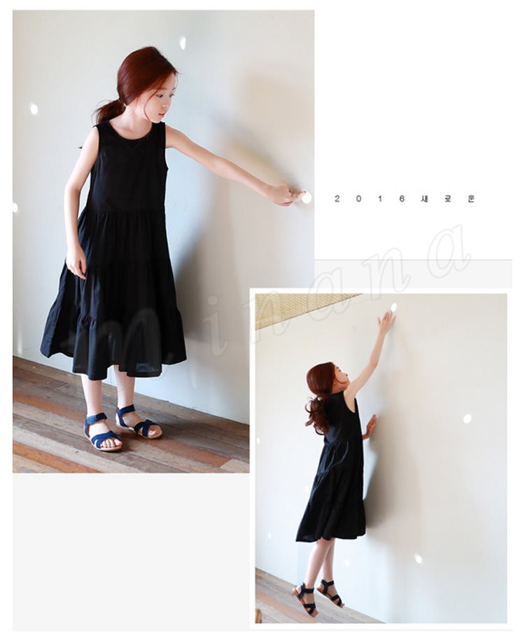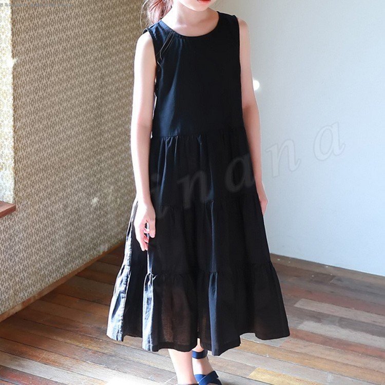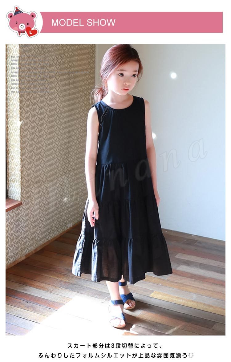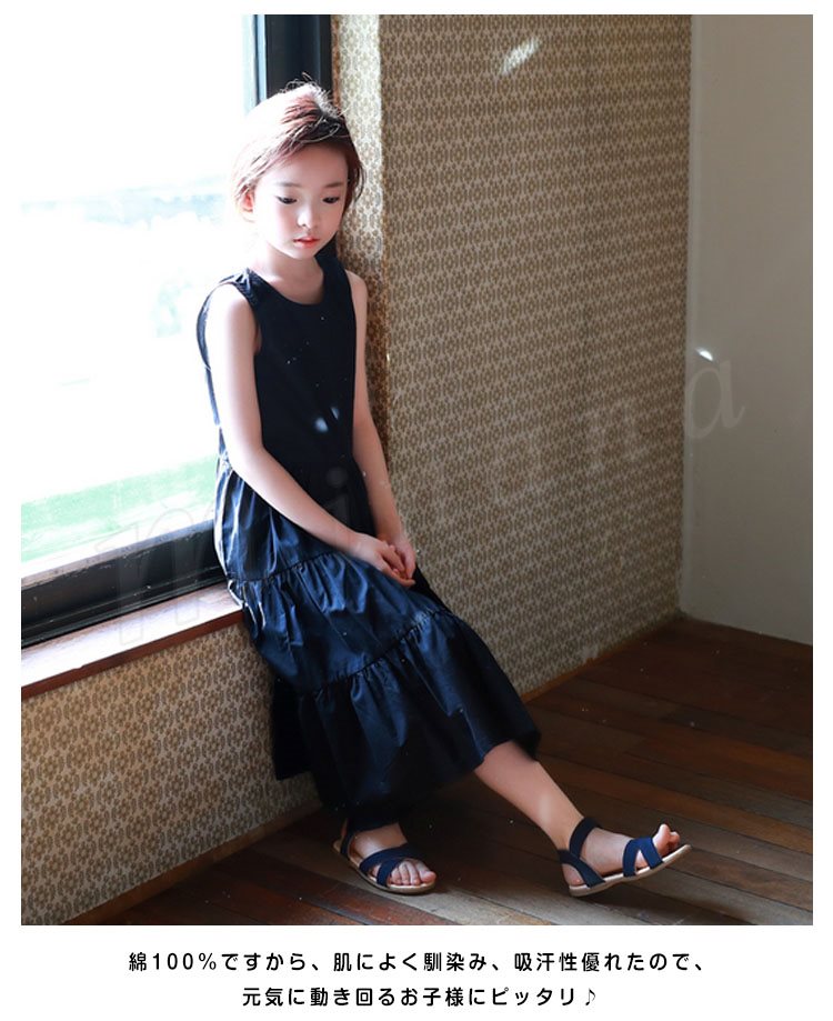 タンクトップワンピース 女の子 子供服 綿100% ノースリーブワンピース キッズ ティーアド フリル ミモレ丈 ロングワンピース 袖なし 無
