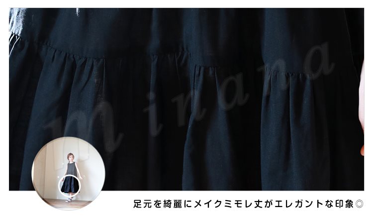 スカート部分は3段切替によって、ふんわりしたフォルムシルエットが上品な雰囲気漂う◎