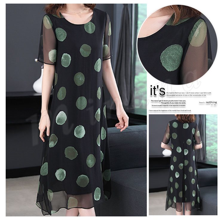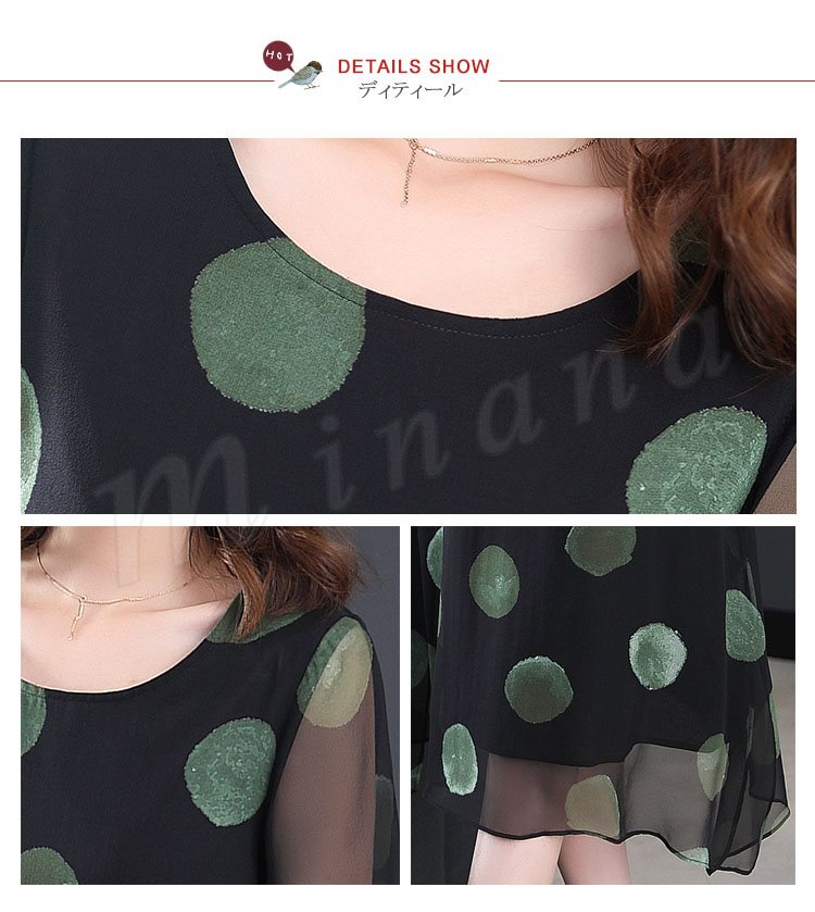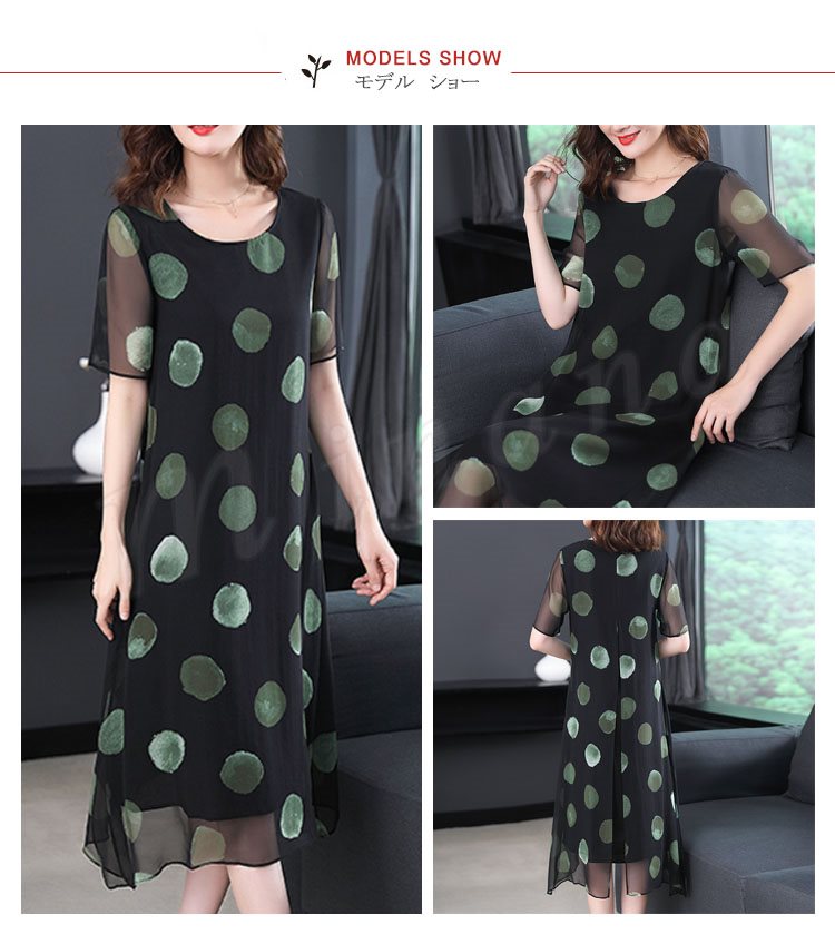 ワンピース レディース 膝丈 シフォンワンピース 半袖 大きいサイズ ドット柄フレアワンピース ゆったり 30代 40代 50代 2018春夏新作