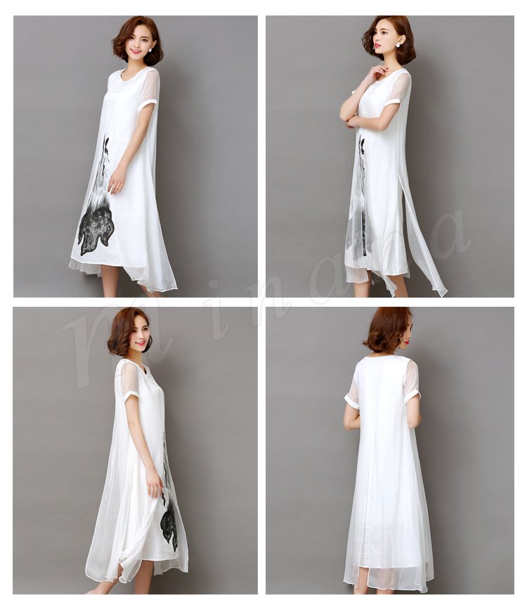 マキシワンピース 半袖 リゾート ワンピース レディース 無地 ワンピース Aライン 大きいサイズ ロング リネン ワンピース 2018春夏新作