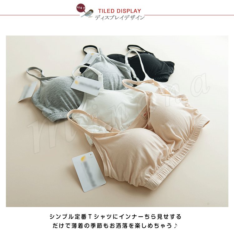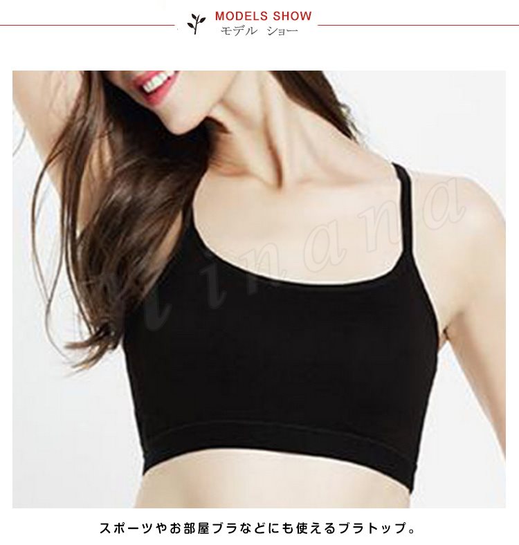 | 程よい締め付けで着心地ラクチン♪ スポーツやお部屋ブラなどにも使えるブラトップ。 シンプル定番Tシャツにインナーちら見せするだけで薄着の季節もお洒落を楽しめちゃう♪ 安心のカップ付きブラトップでブラ紐が見えちゃう心配もナシ!!! 1枚あるだけで着回し力抜群の便利アイテムです! | |