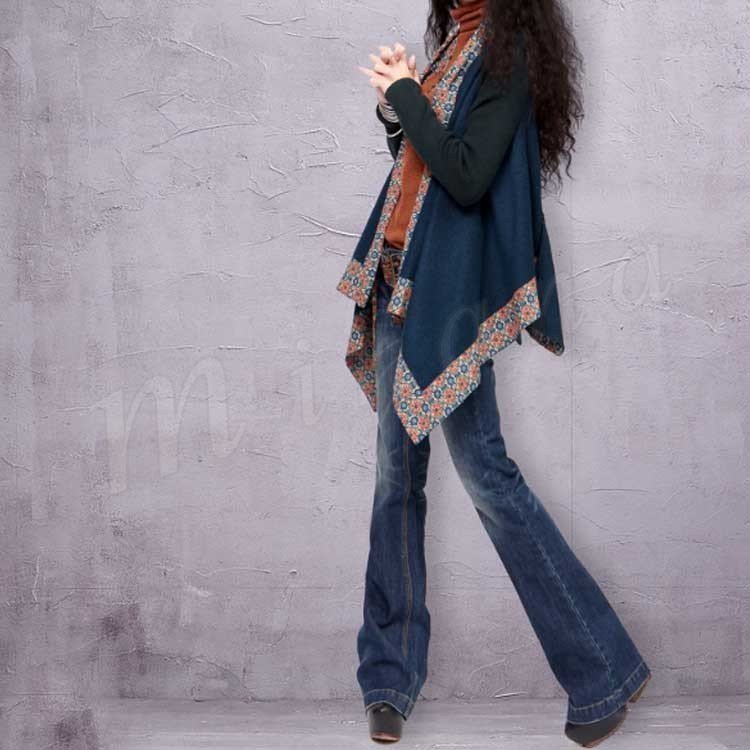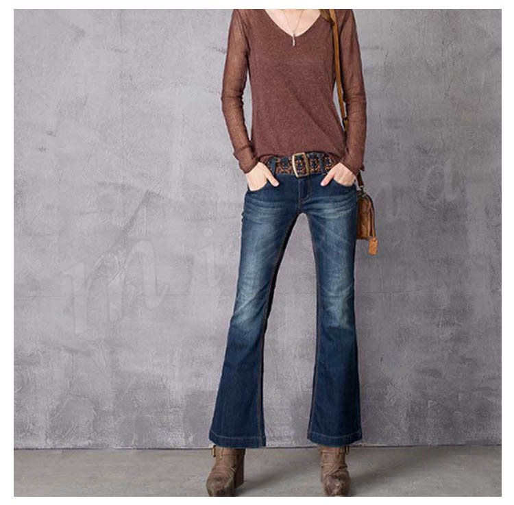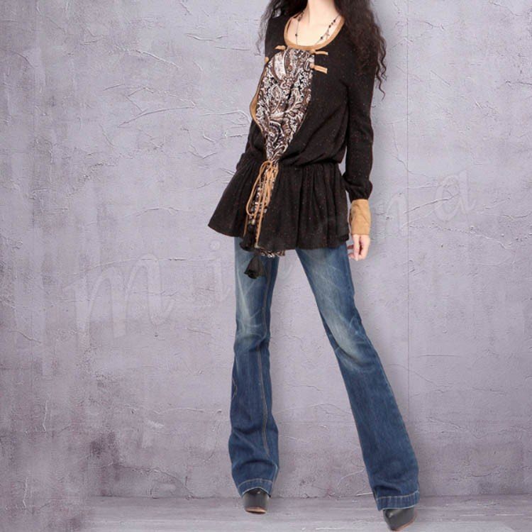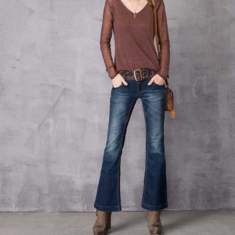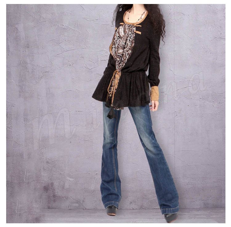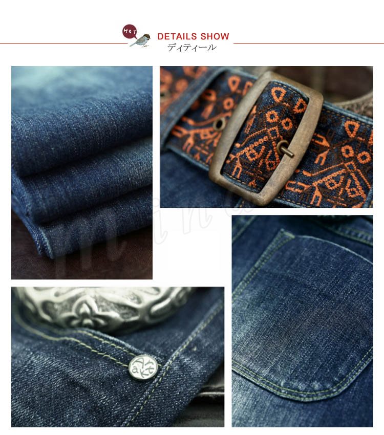 オリジナルデザイン エスニック系/個性的/色落ち加工/フレアデニムパンツ/刺繍ベルト付 民族系 シルエット フェミニン