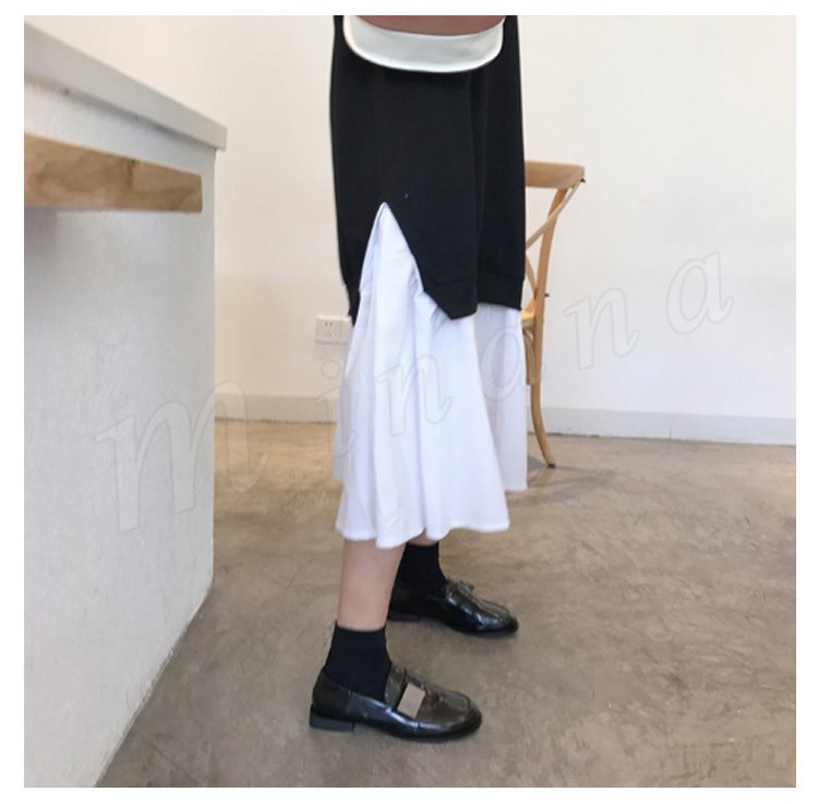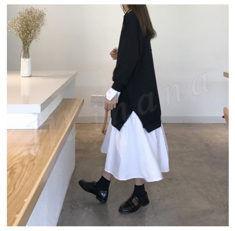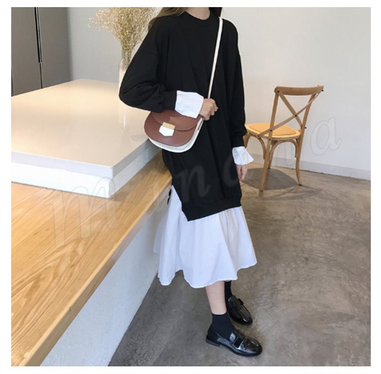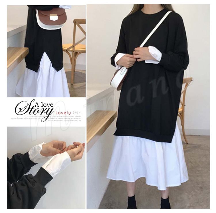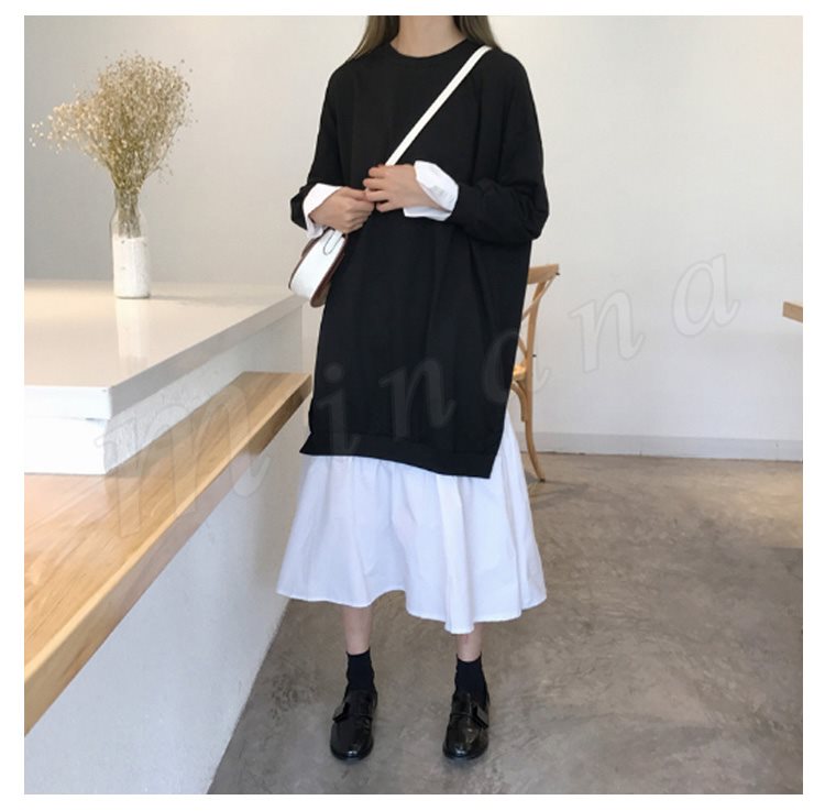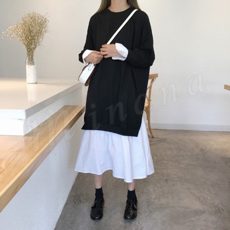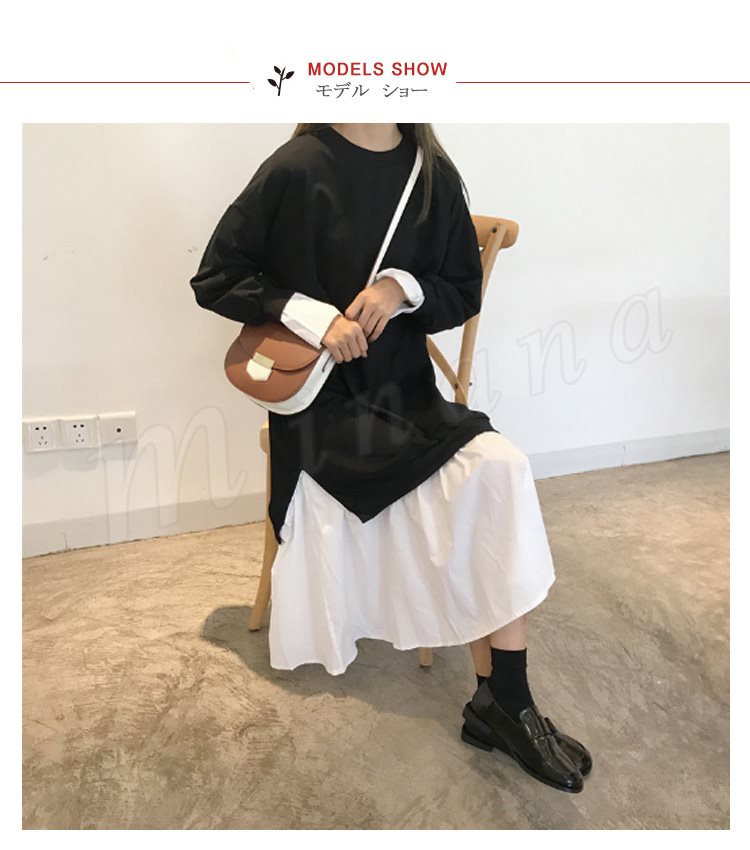 レディース パーカー ワンピース 長袖 レイヤード 切替 バイカラー 着やせ ミモレ丈 スリット チュール 無地 大きいサイズ