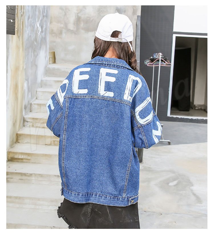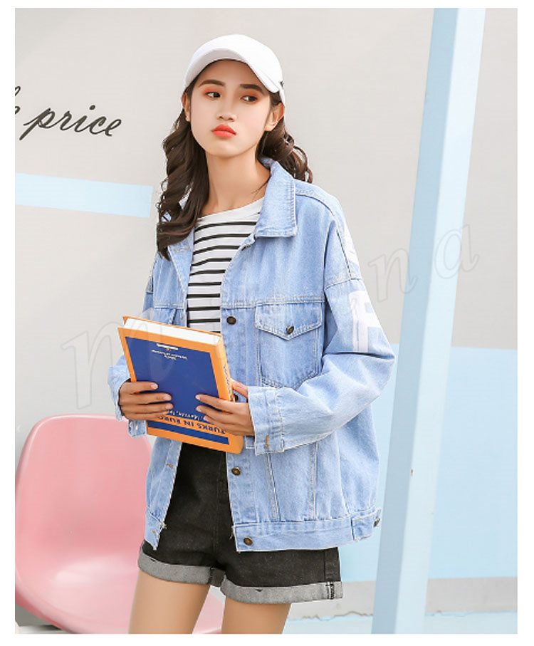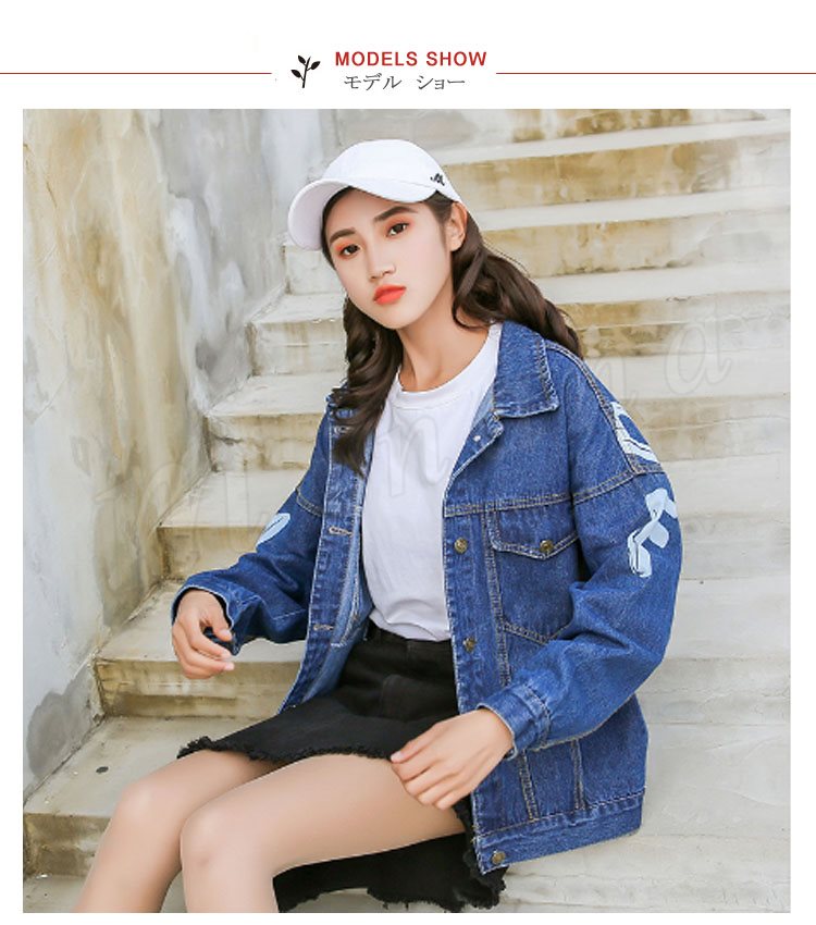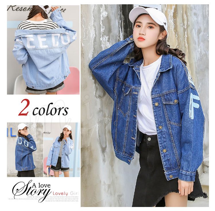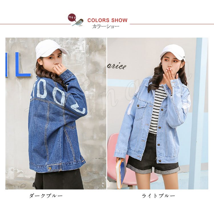 デニムジャケット レディース 長袖 Gジャン 英字プリント カジュアル アウター スプリングコート トップス ゆったり おしゃれ 春秋