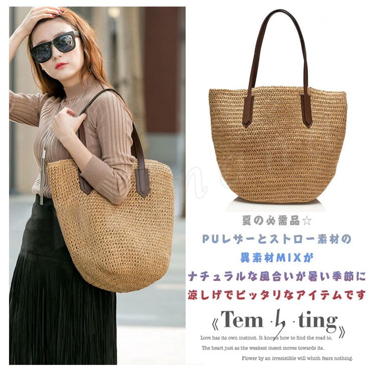 夏バッグ サマーバッグ ストローバッグ 肩がけ バッグ ペーパーバッグ かごバッグ カゴバッグ トートバッグ ナチュラル リゾートスタイル 編