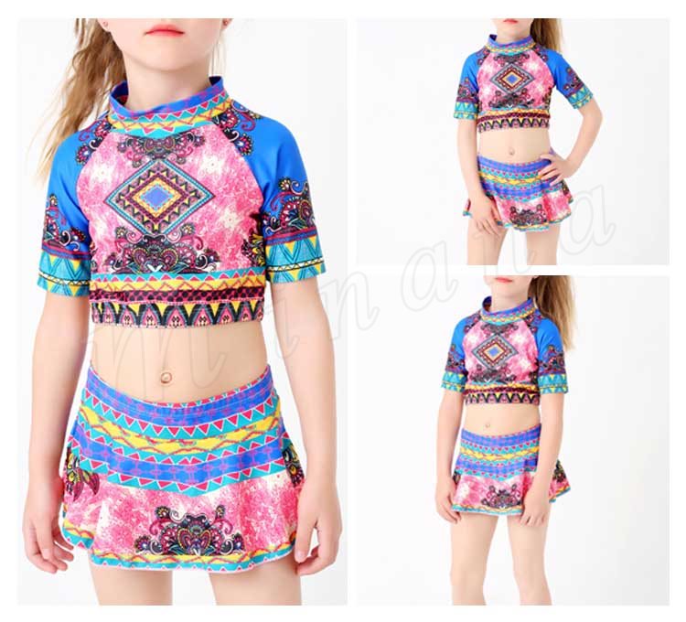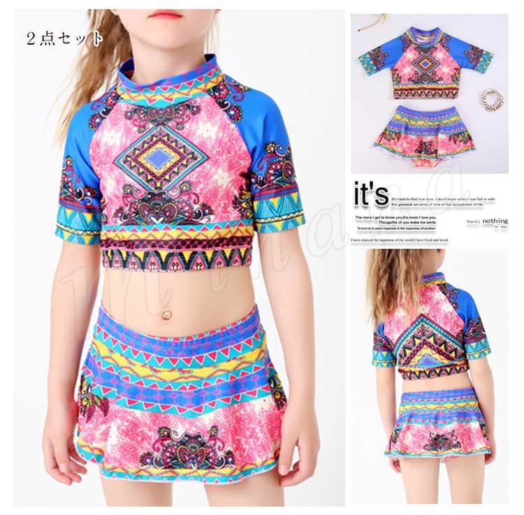 水着 キッズ 女の子 水着 ショートパンツ セパレート 子供 水着 半袖 2点セット スカート 水着 キッズ 女の子 スクール水着 花柄