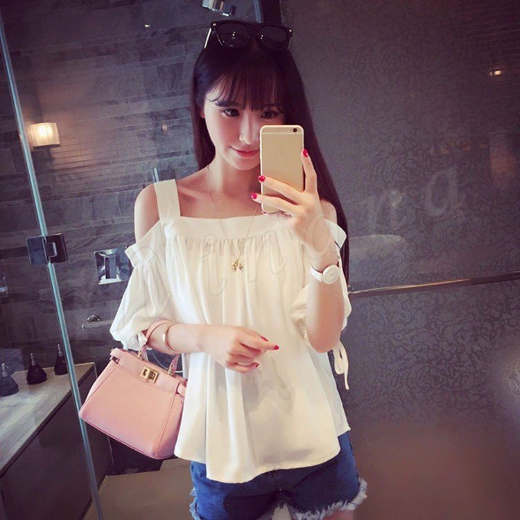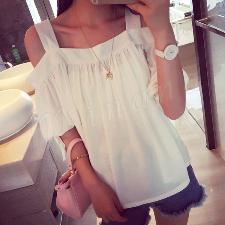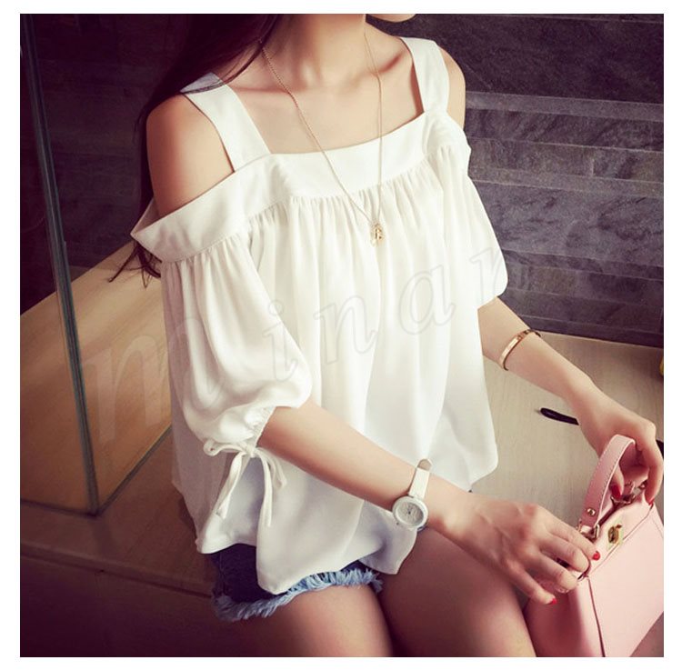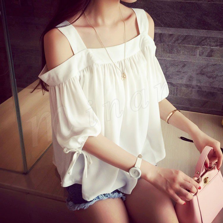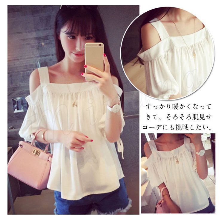 レディース オフショルダー 肩見せ キャザー ボートネック シフォン ブラウス トップス 肩出し 女性らしい フェミニン ホワイト フリーサイズ