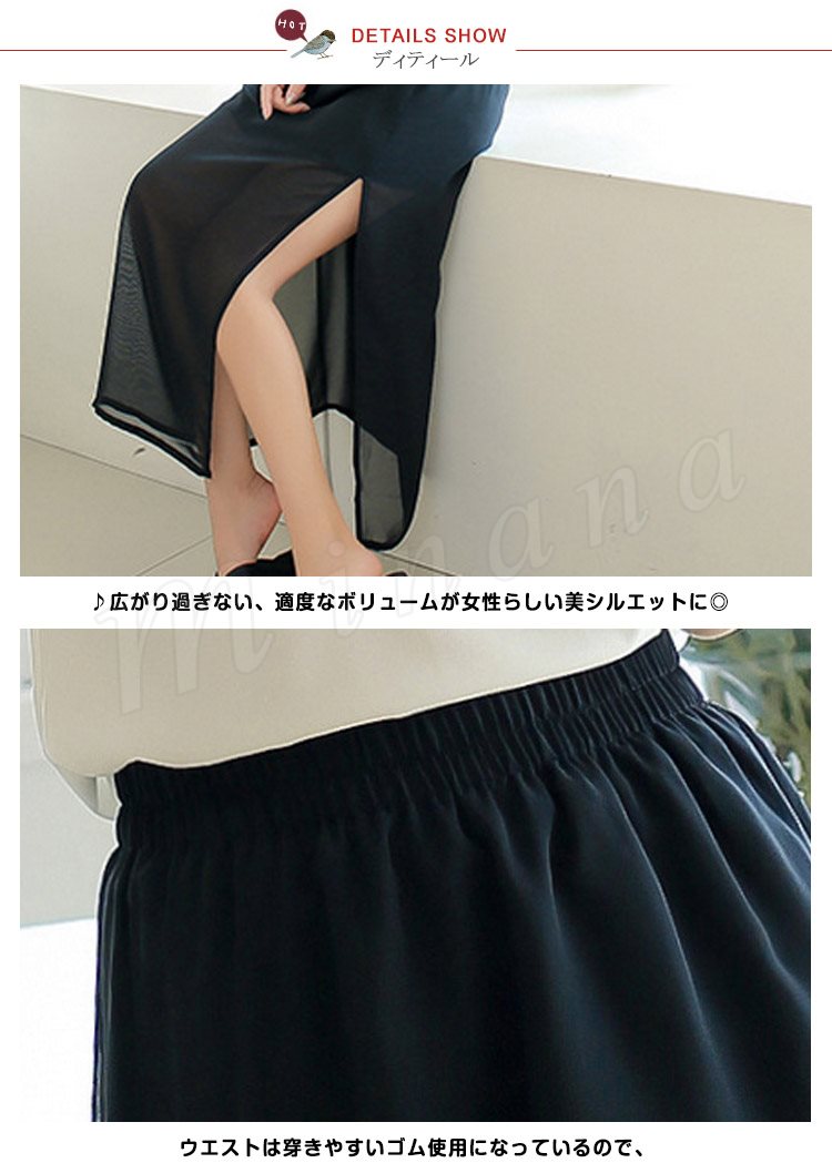 自然に揺れるシルエットが美しいフレアシフォンスカート。