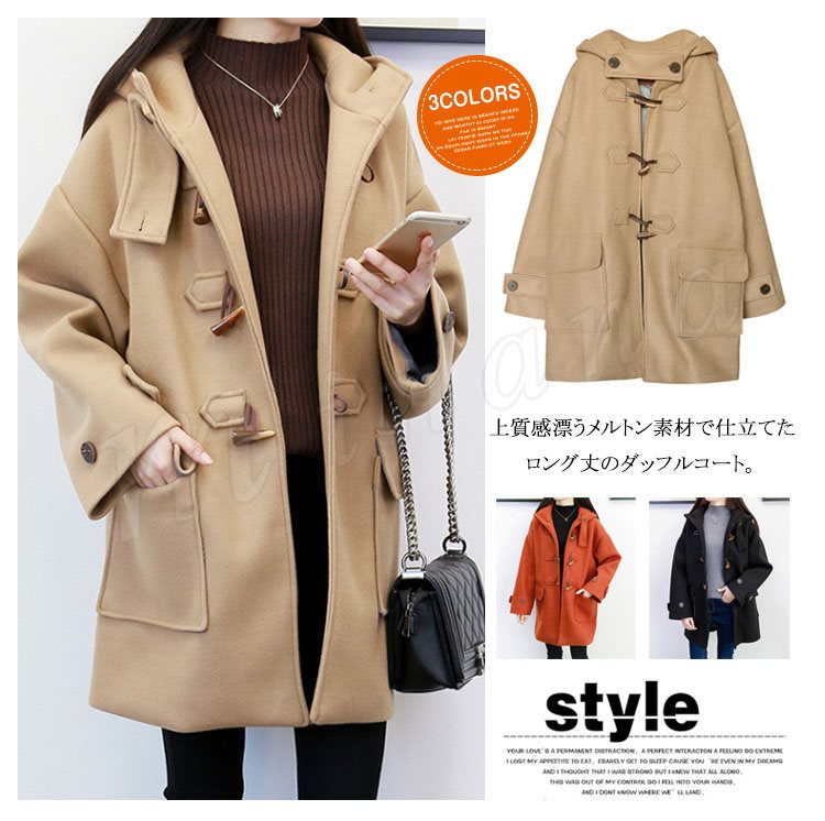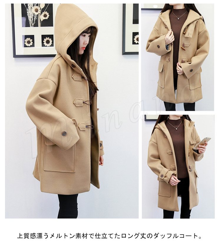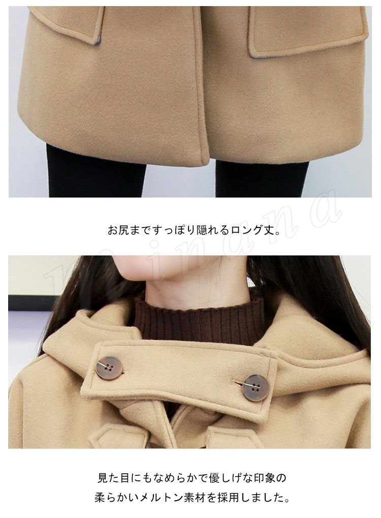 ダッフルコート ロング メルトンコート メルトン ダッフルコート ロング丈 アウター ロング コート ロングコート フード ベーシック 通勤