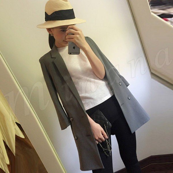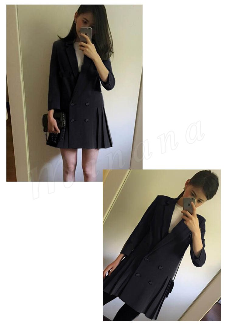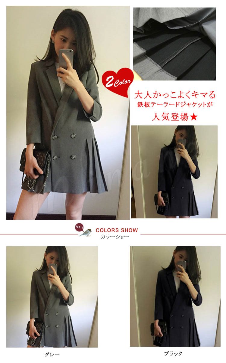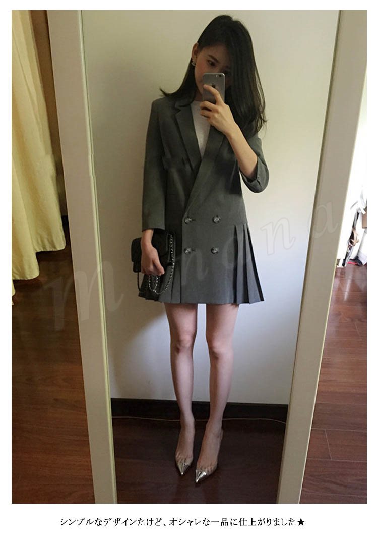 スーツコートテーラードジャケットワンピース風七分袖大きいサイズレディース春アウター無地ジャケットダブルコートOLプリーツフェミ