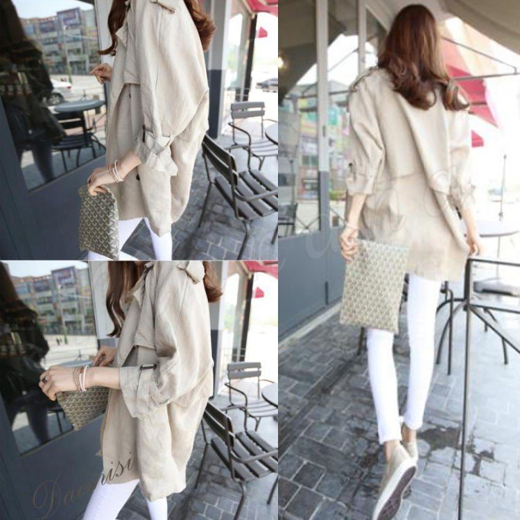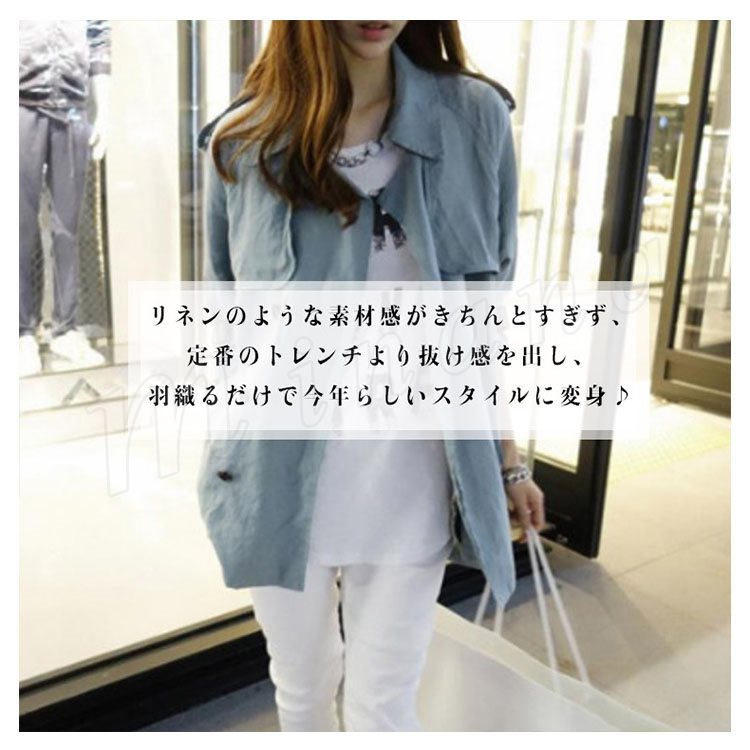 リネンのような素材感がきちんとすぎず、定番のトレンチより抜け感を出し、羽織るだけで今年らしいスタイルに変身♪