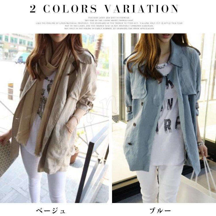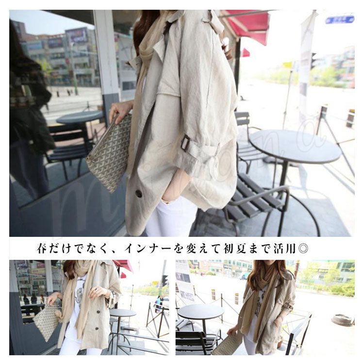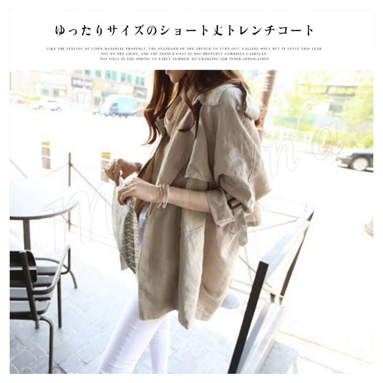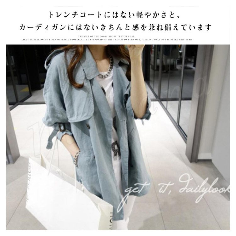カーディガンのように羽織れる。七分袖トレンチコート レディース トレンチコート ショート丈 7分袖 カーディガン 羽織 ライトアウター コート