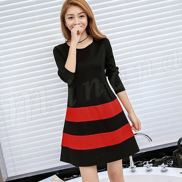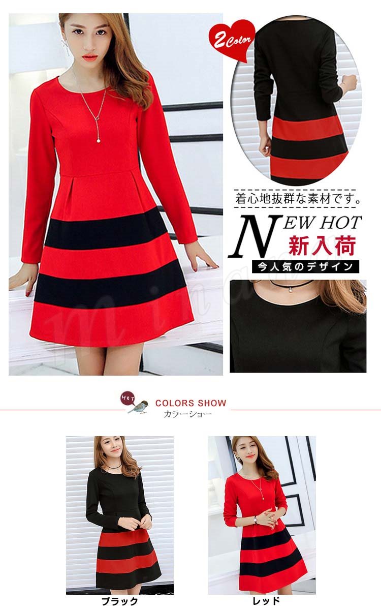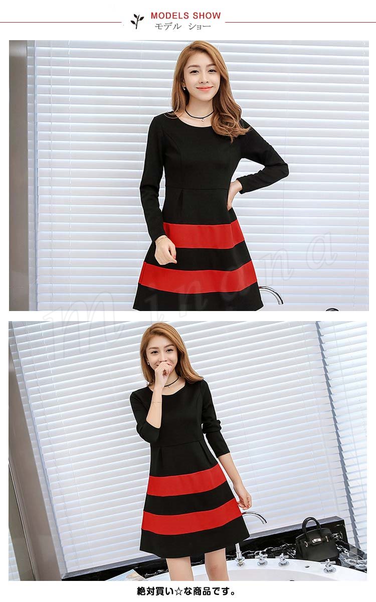 チュニックワンピースボーダードッキング通勤Aライン秋冬