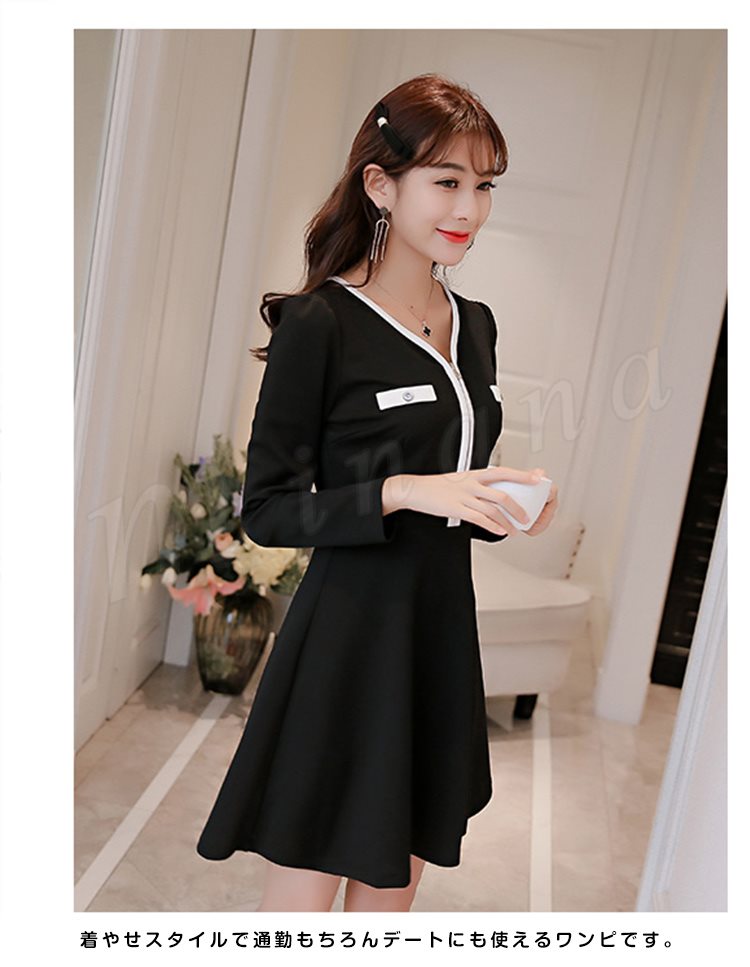 チュニックワンピースワンピフレアきれいめVネック春通勤