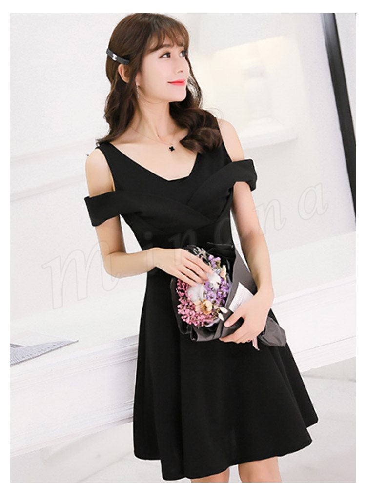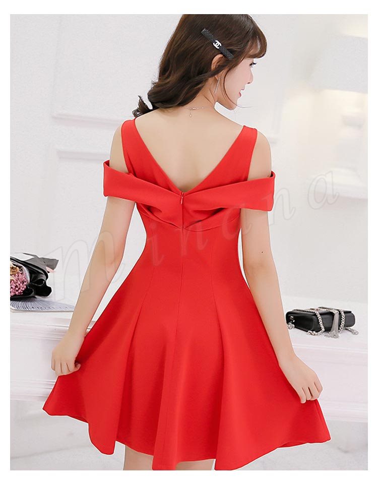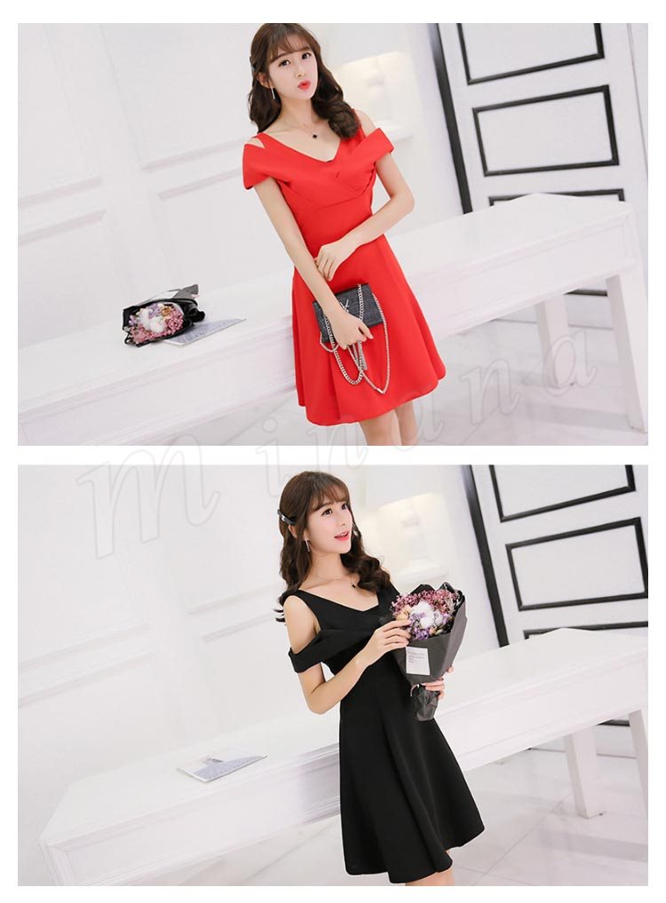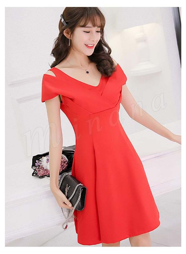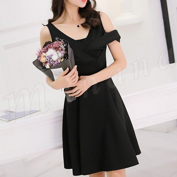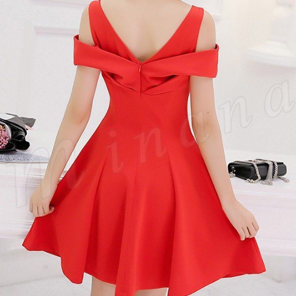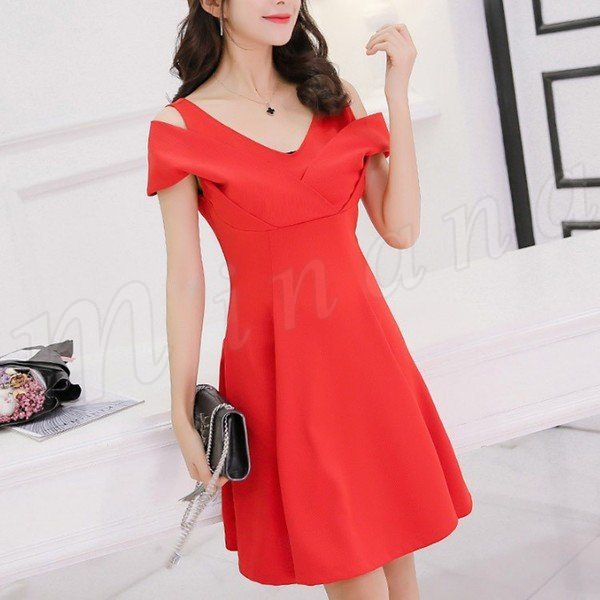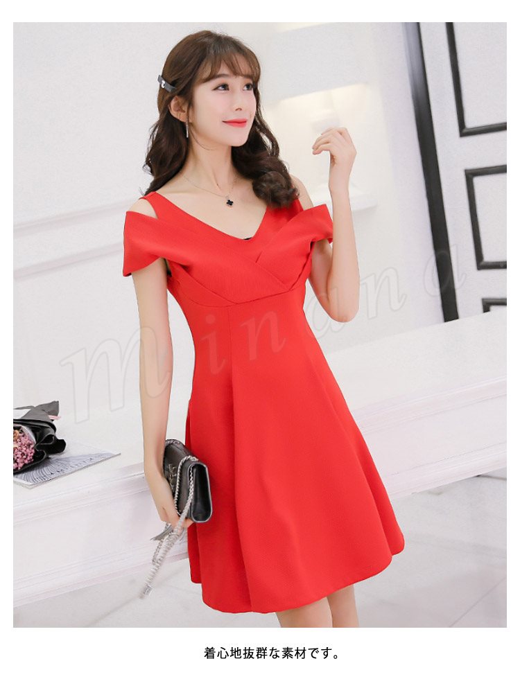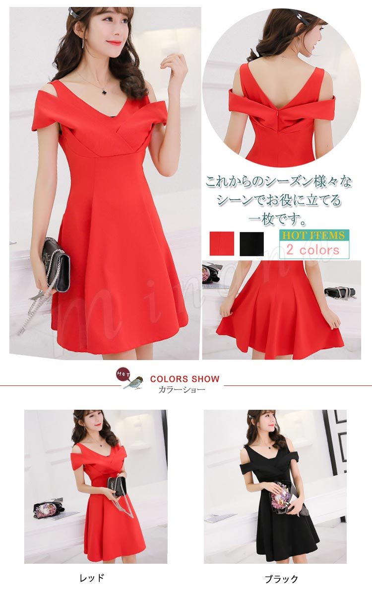 フレアワンピースレディースパーティワンピ肩見せ春夏