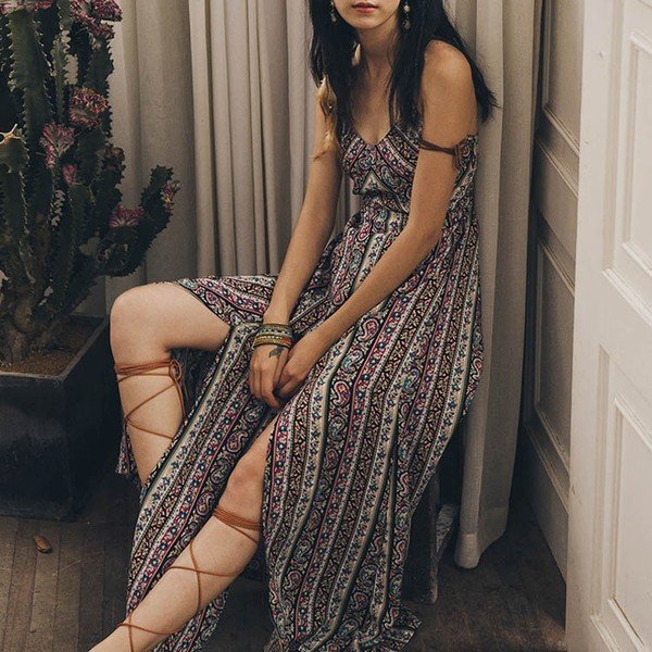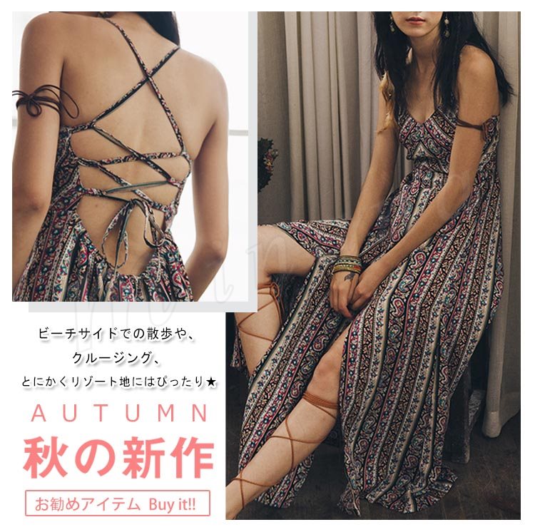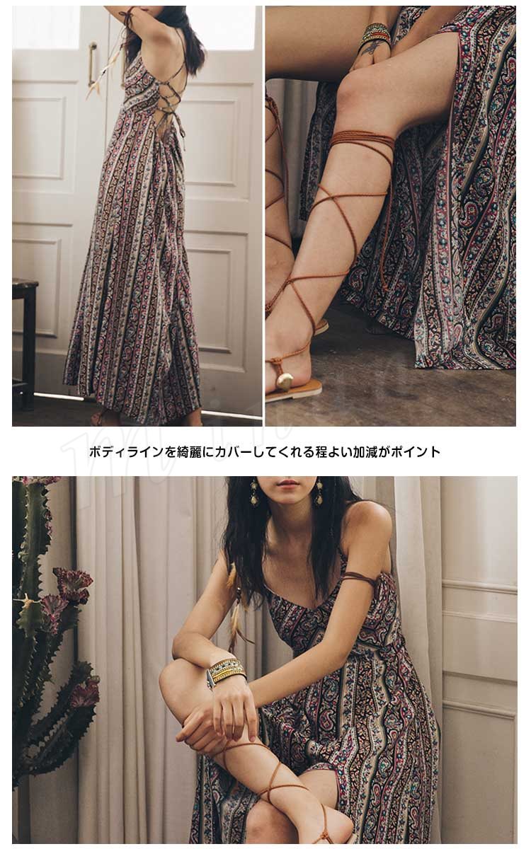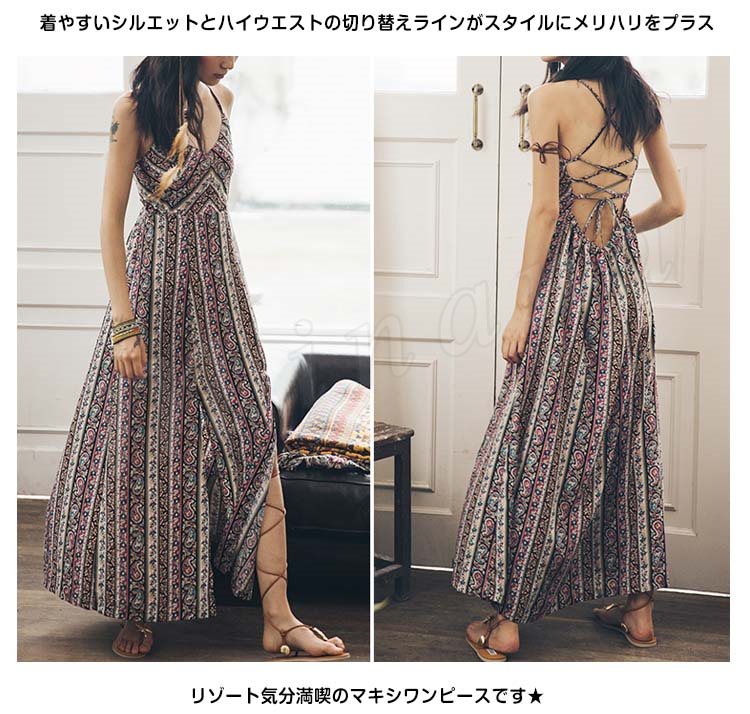 キャミワンピワンピースロングワンピースビーチワンピースノースリーブマキシワンピレディース夏ワンピーススリットワンピvネックボタニカ