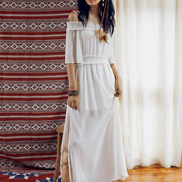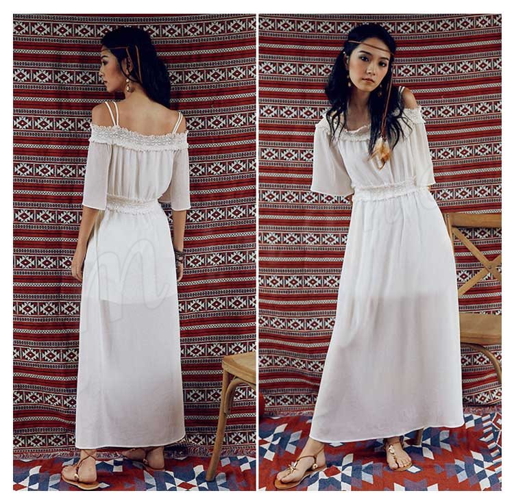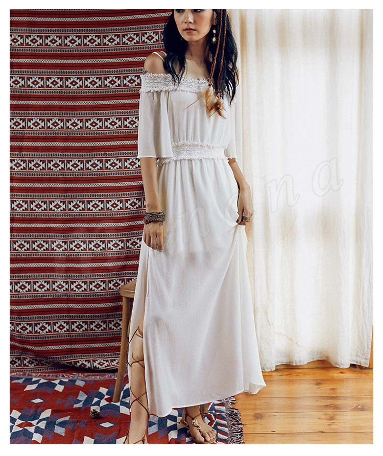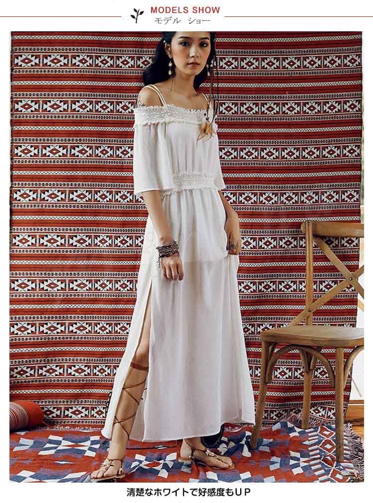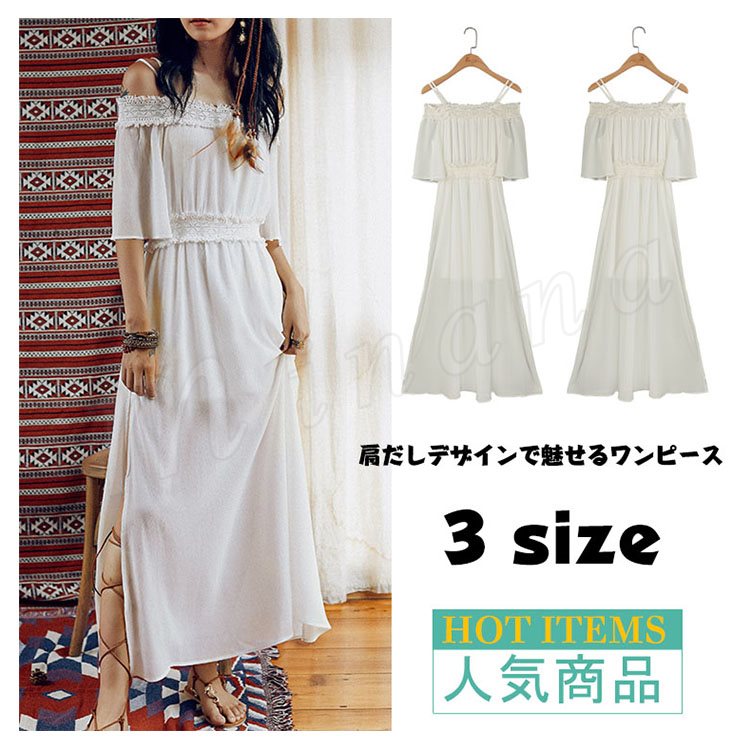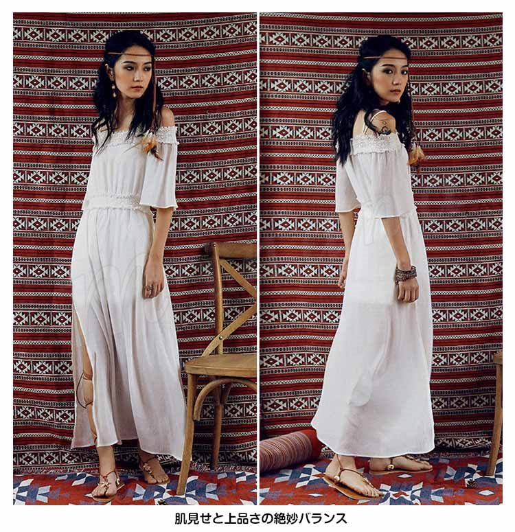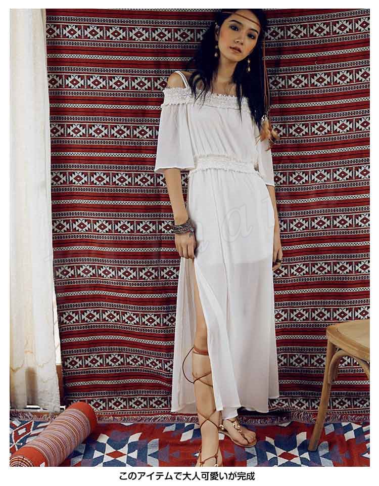 オフショルダーワンピワンピースロングワンピースビーチワンピースドレスマキシワンピレディース夏ワンピーススリットワンピ肩見せボ無地