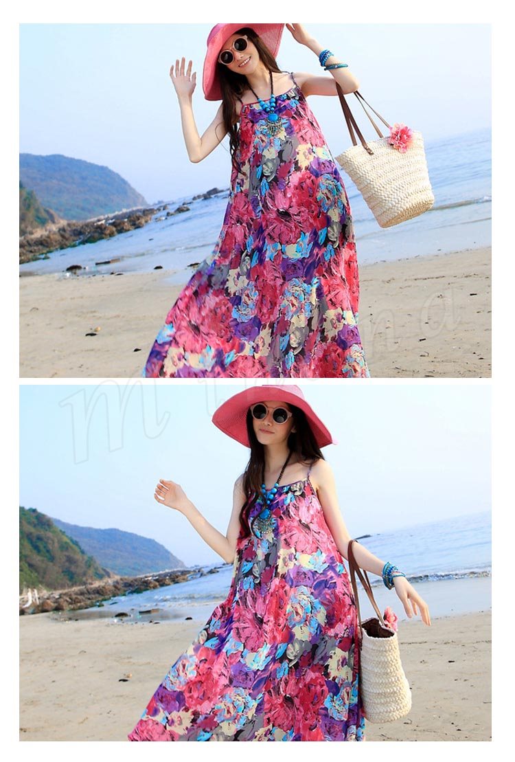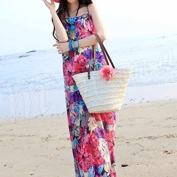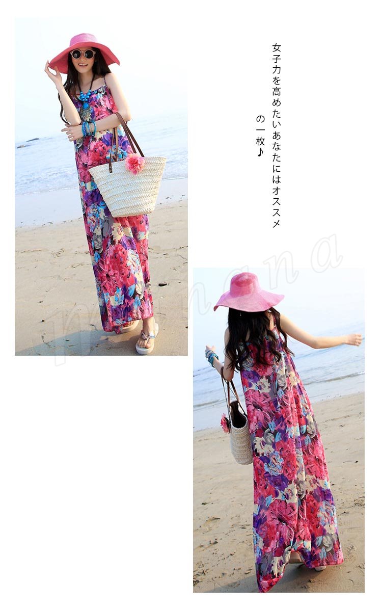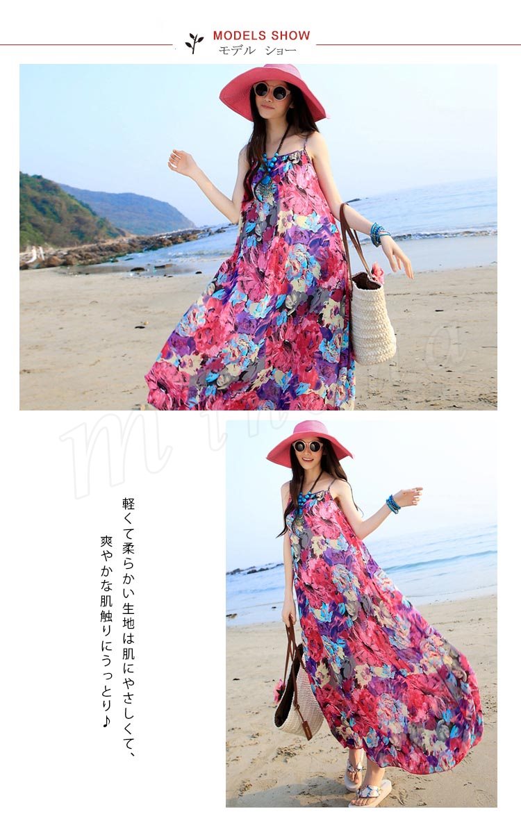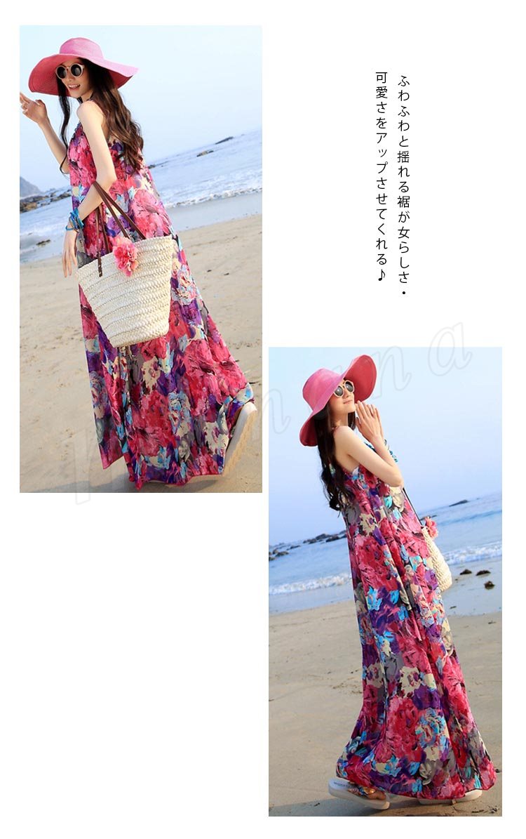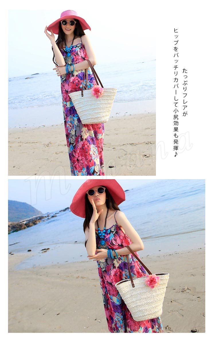 ビーチワンピース花柄ワンピースキャミソールワンピースマキシ丈フレアワンピースボヘミアン風ワンピースサマー浜辺ワンピース