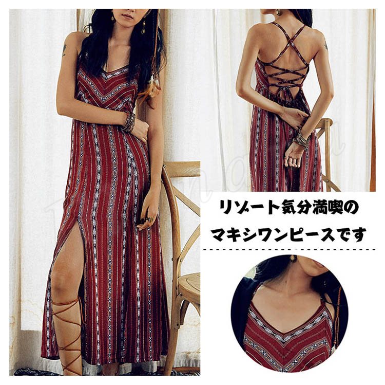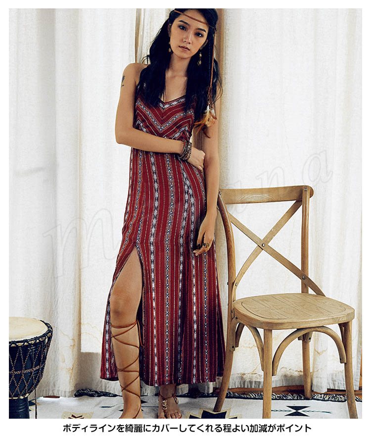 キャミワンピワンピースロングワンピースビーチワンピースノースリーブマキシワンピレディース夏ワンピーススリットワンピvネックボタニカ
