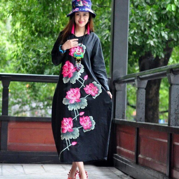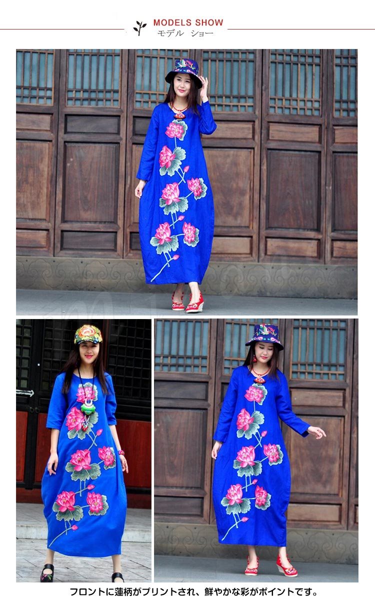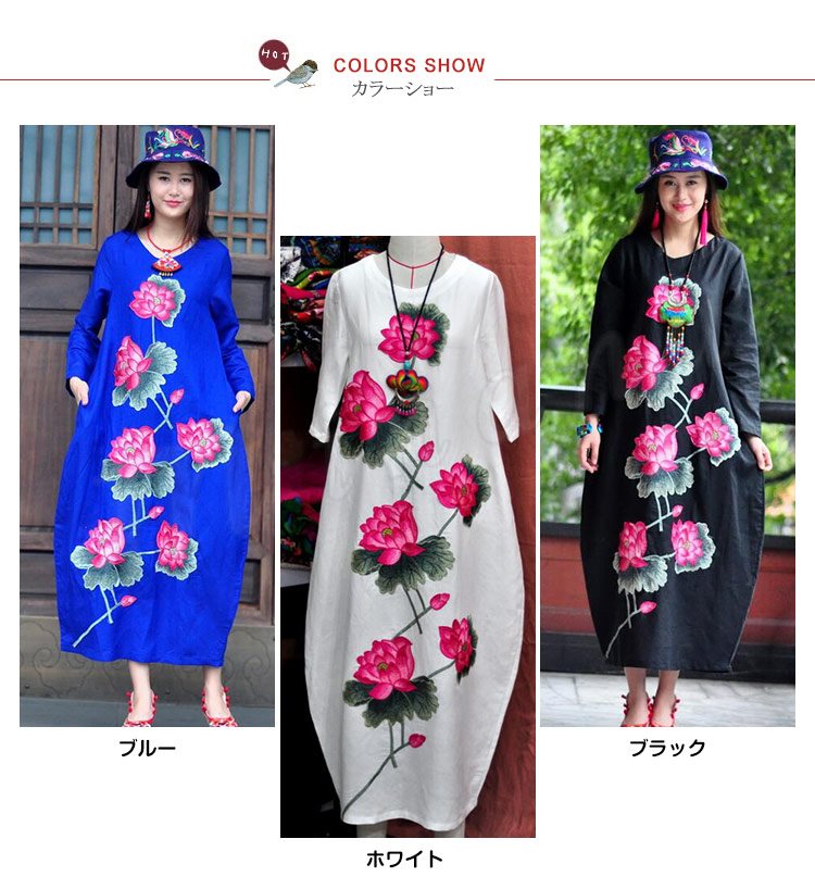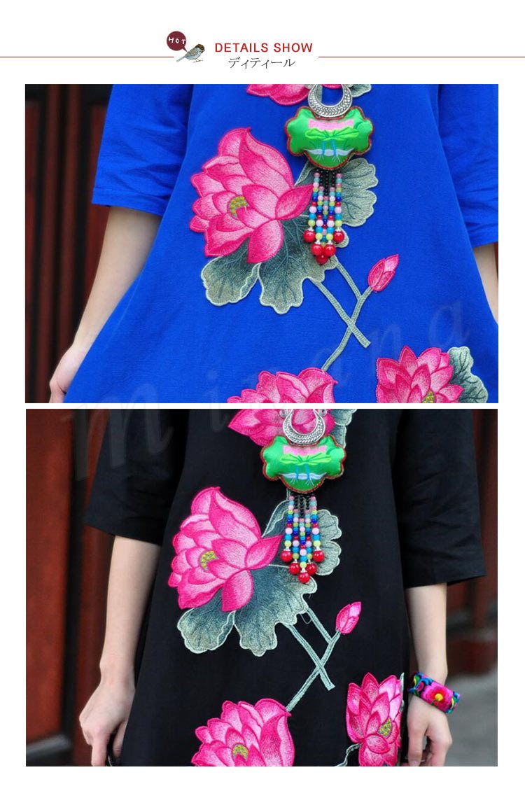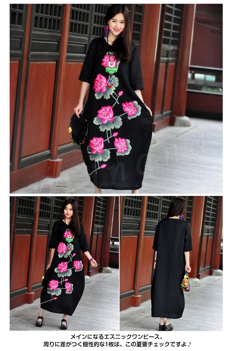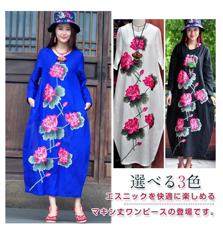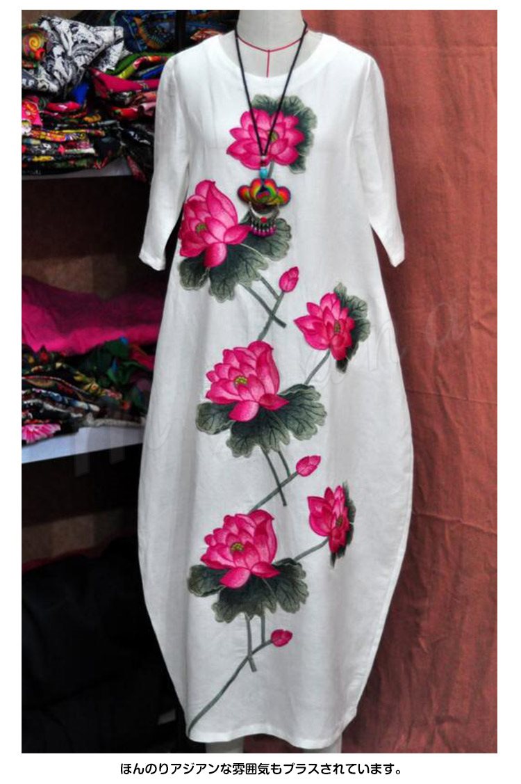 半袖マキシワンピースマキシ丈ワンピースマキシワンピエスニック蓮刺繍カジュアルリゾートワンピ大きいサイズ