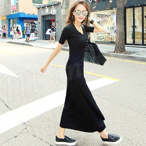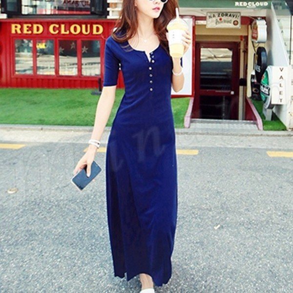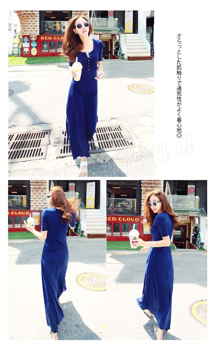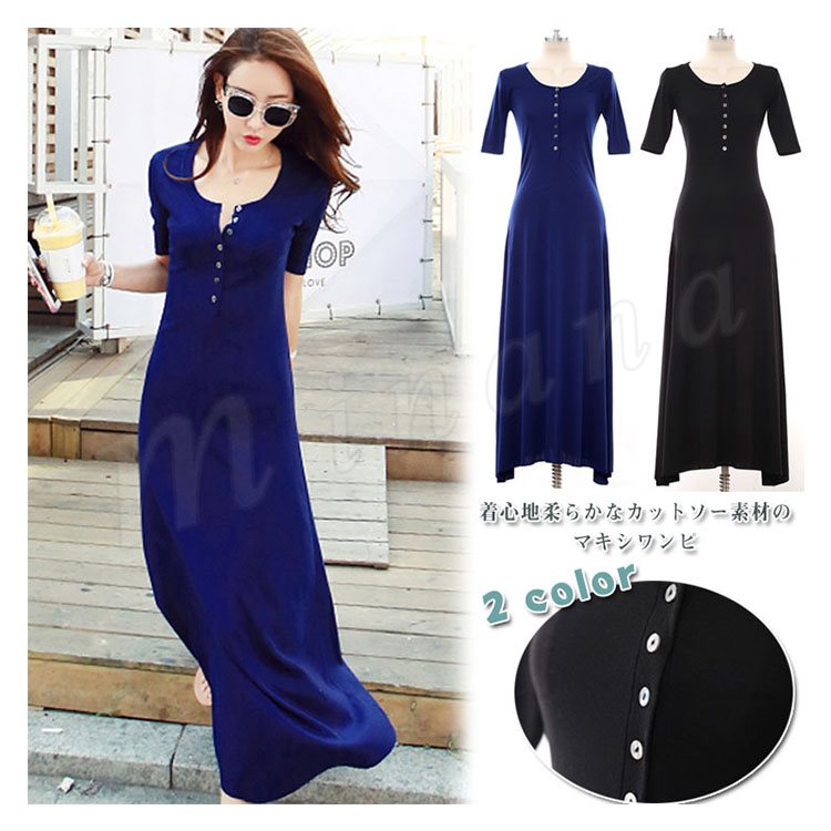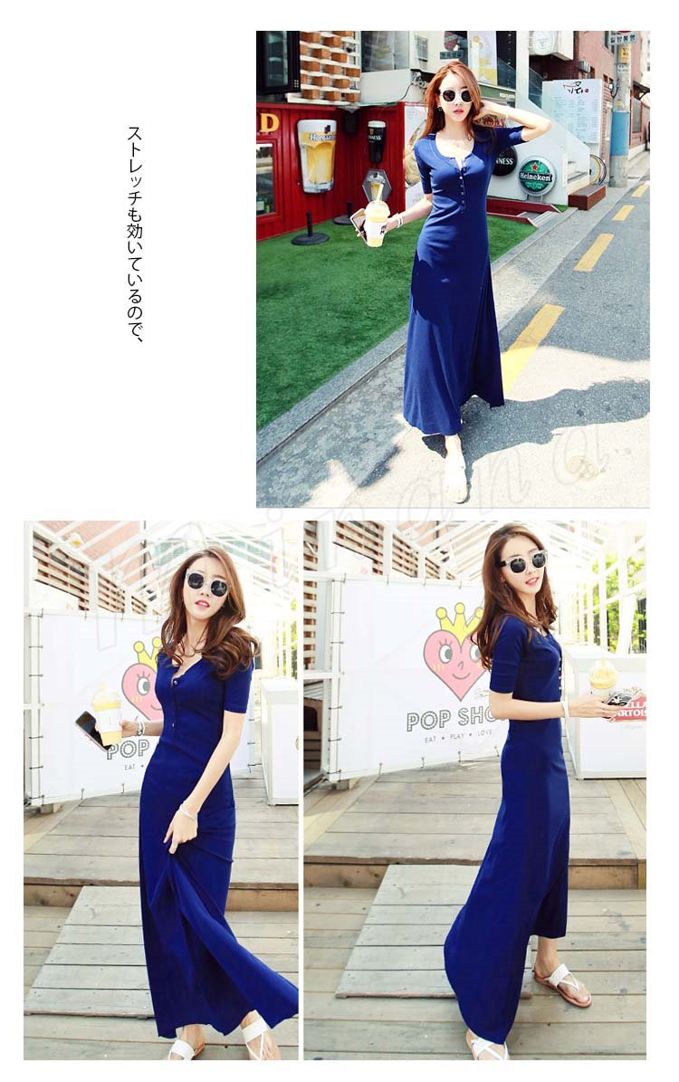 リゾートワンピ半袖タイトワンピース夏ワンピマキシワンピロング丈レディースヘンリーネック無地体型カバーボヘミアプール海