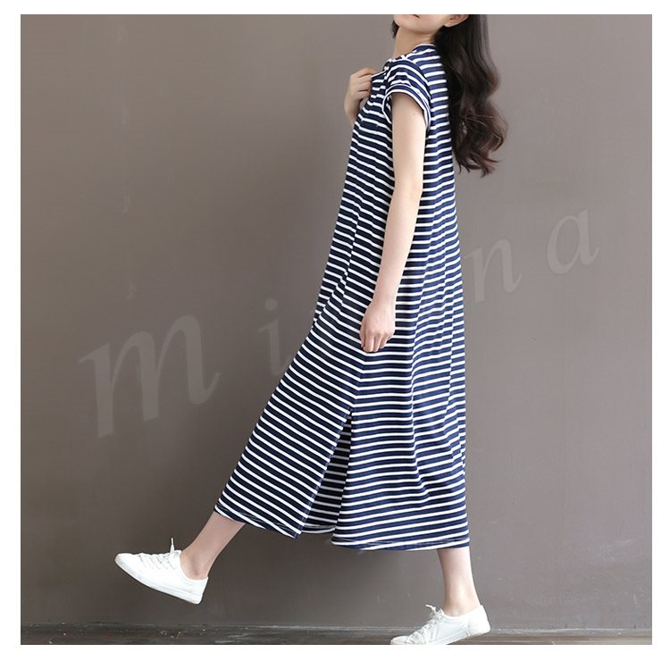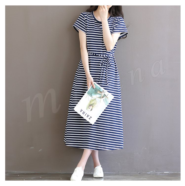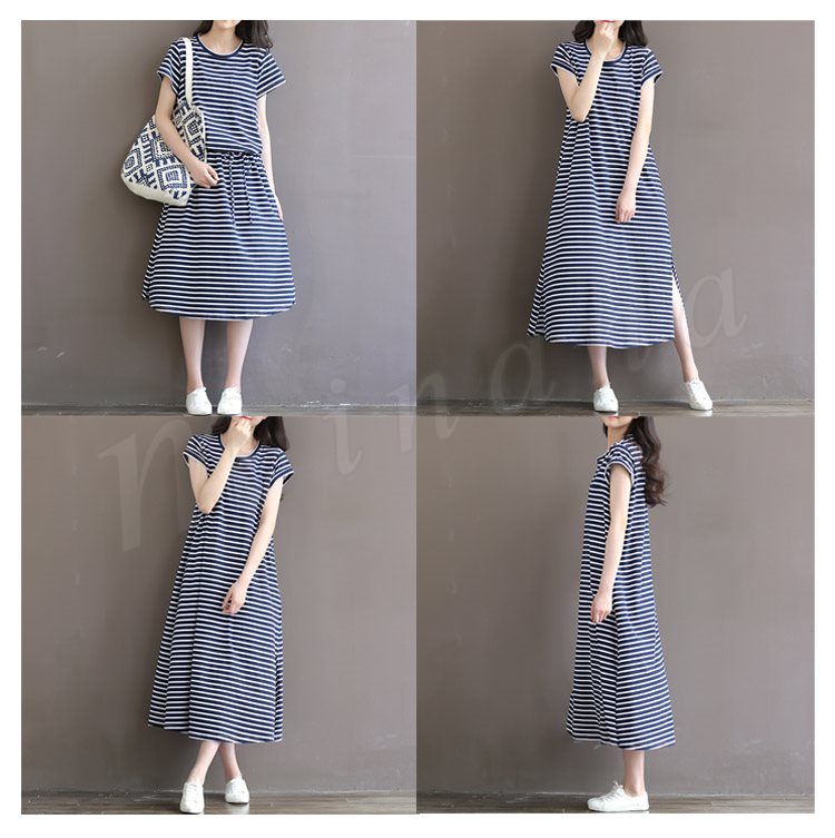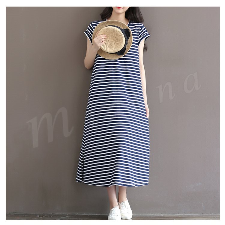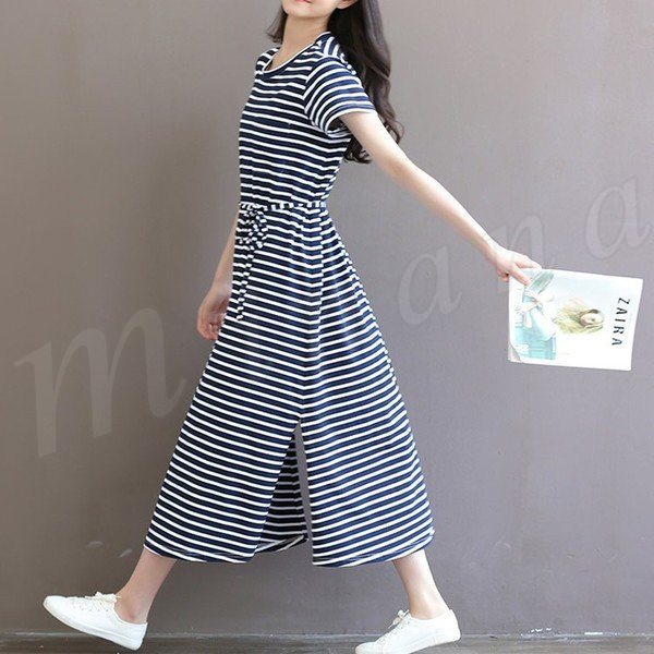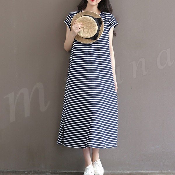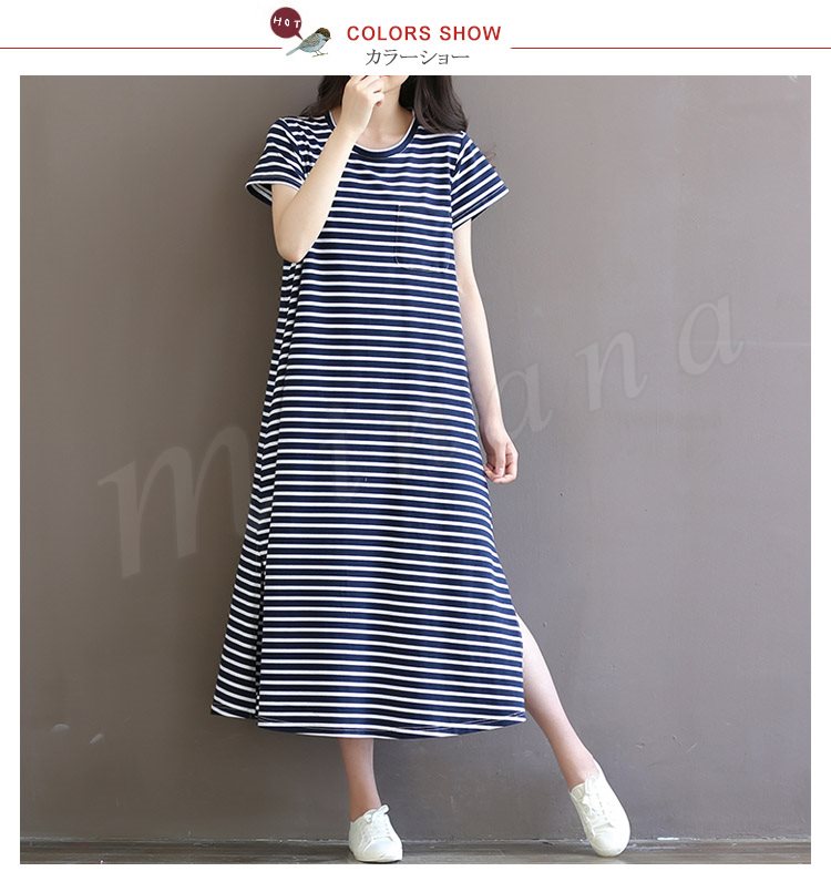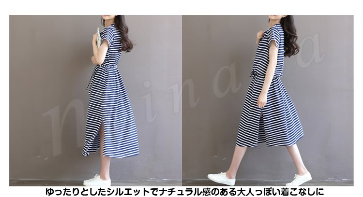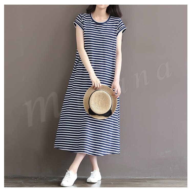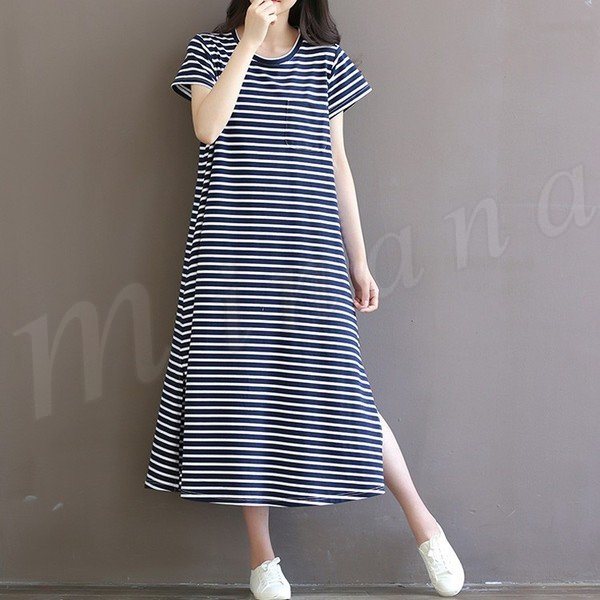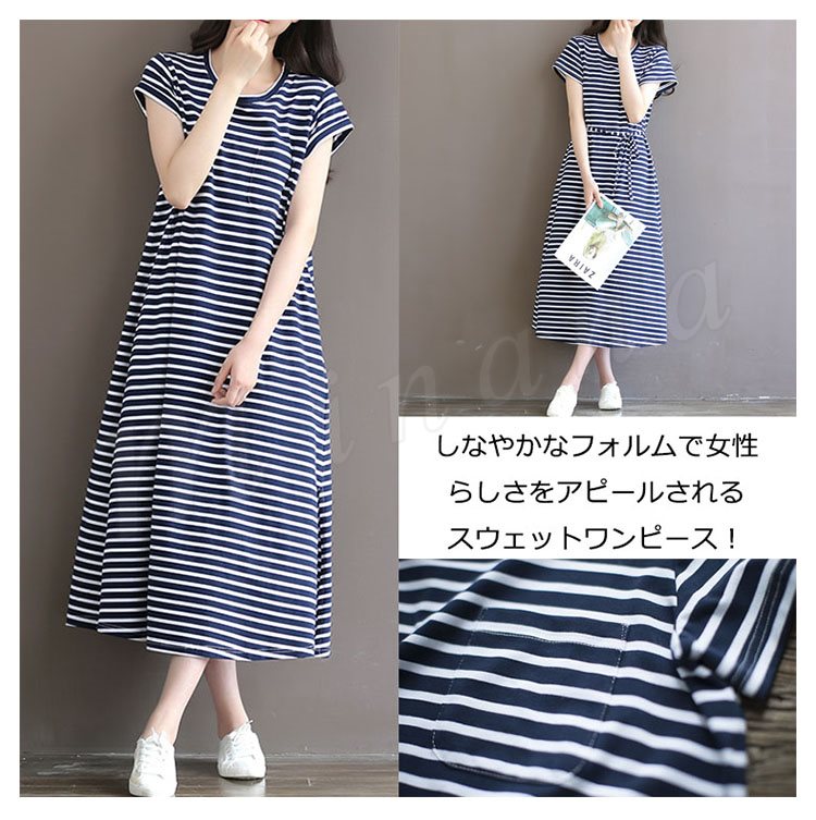 ロングスウェットワンピース半袖サマーワンピースAラインワンピースボーダーワンピースカジュアルワンピースフレアワンピース