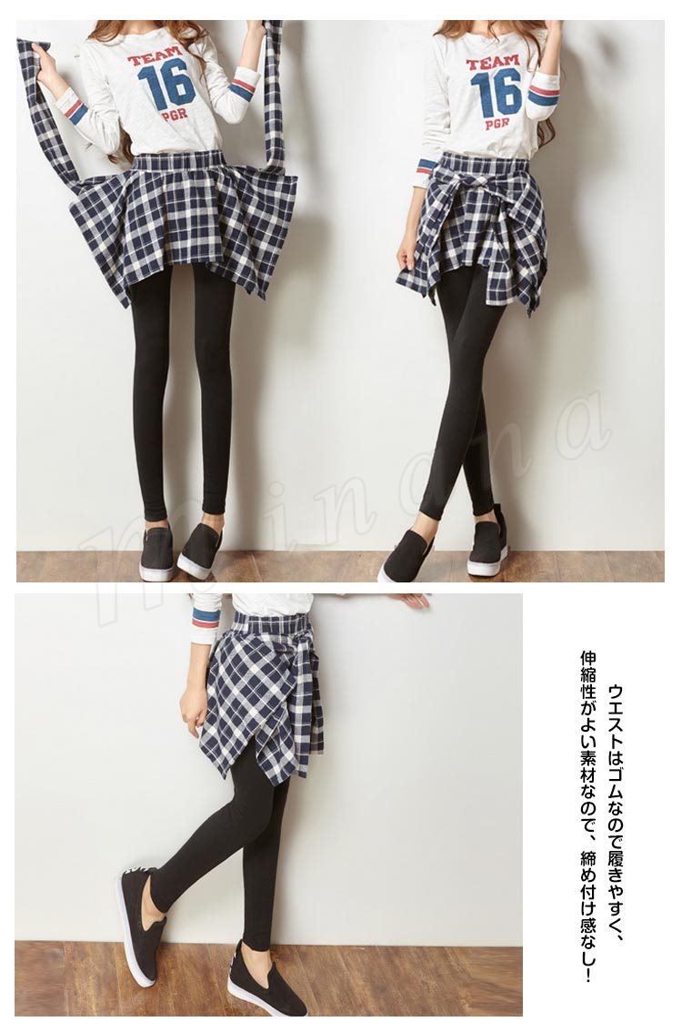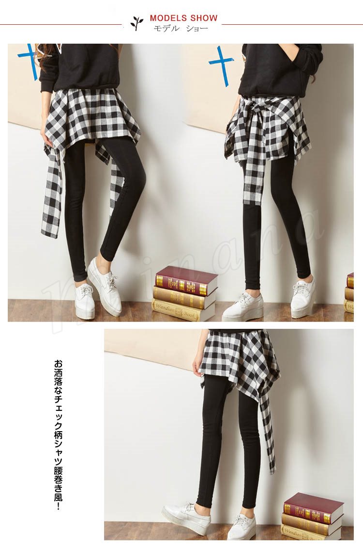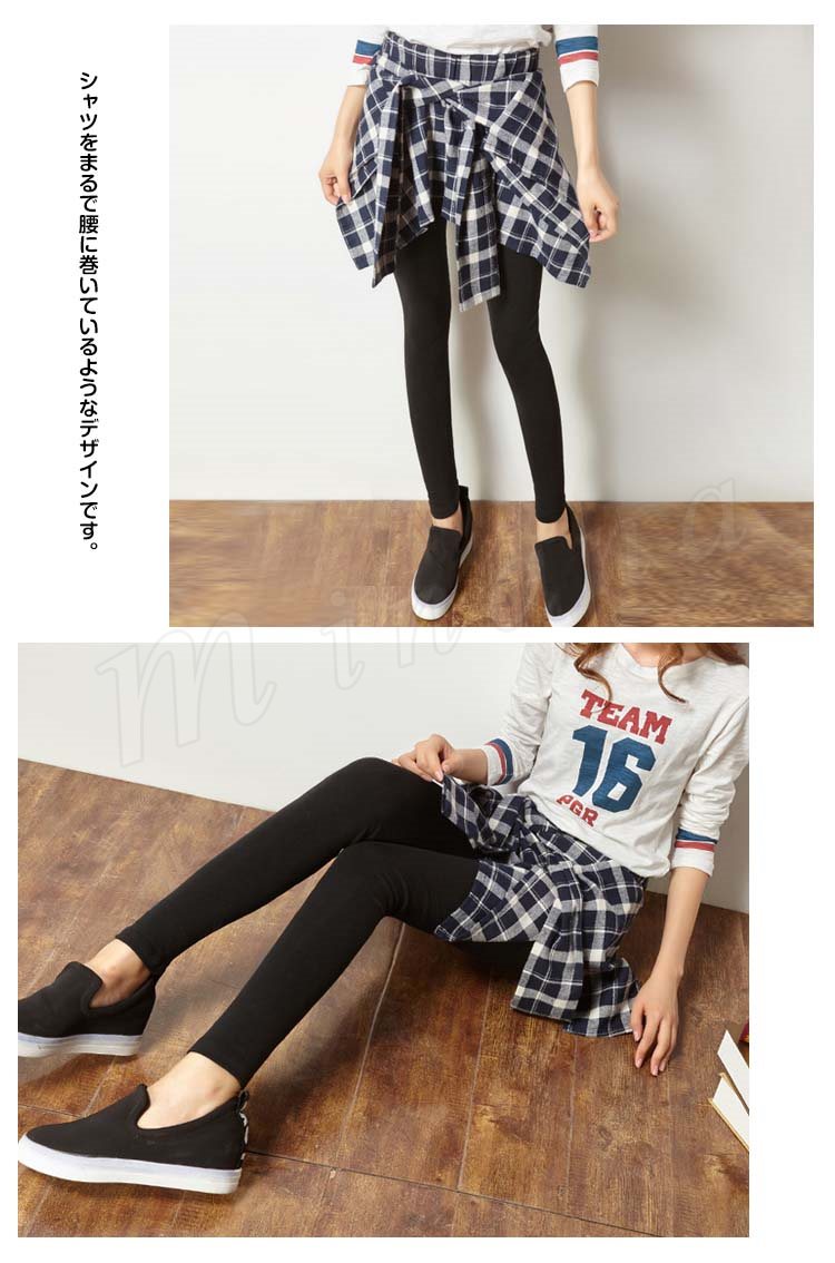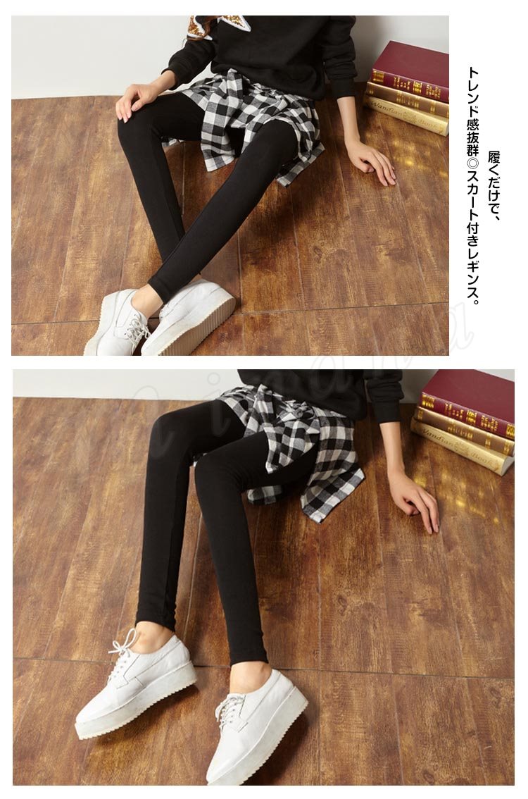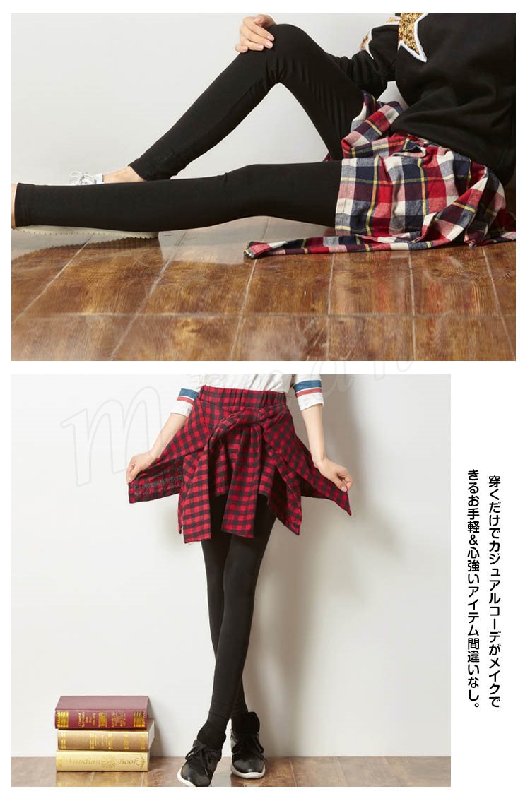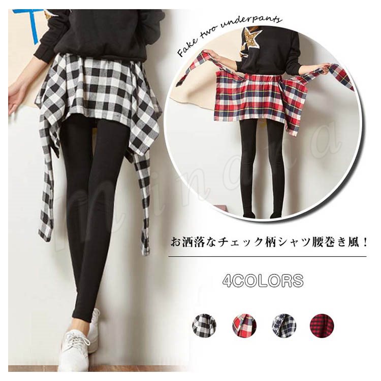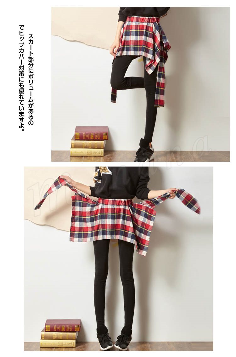 さりげなく体型カバー!チェックシャツ腰巻風 スカート付きレギンス レデイース レギパン スカートレギンス スパッツ レイヤード チェック柄 重