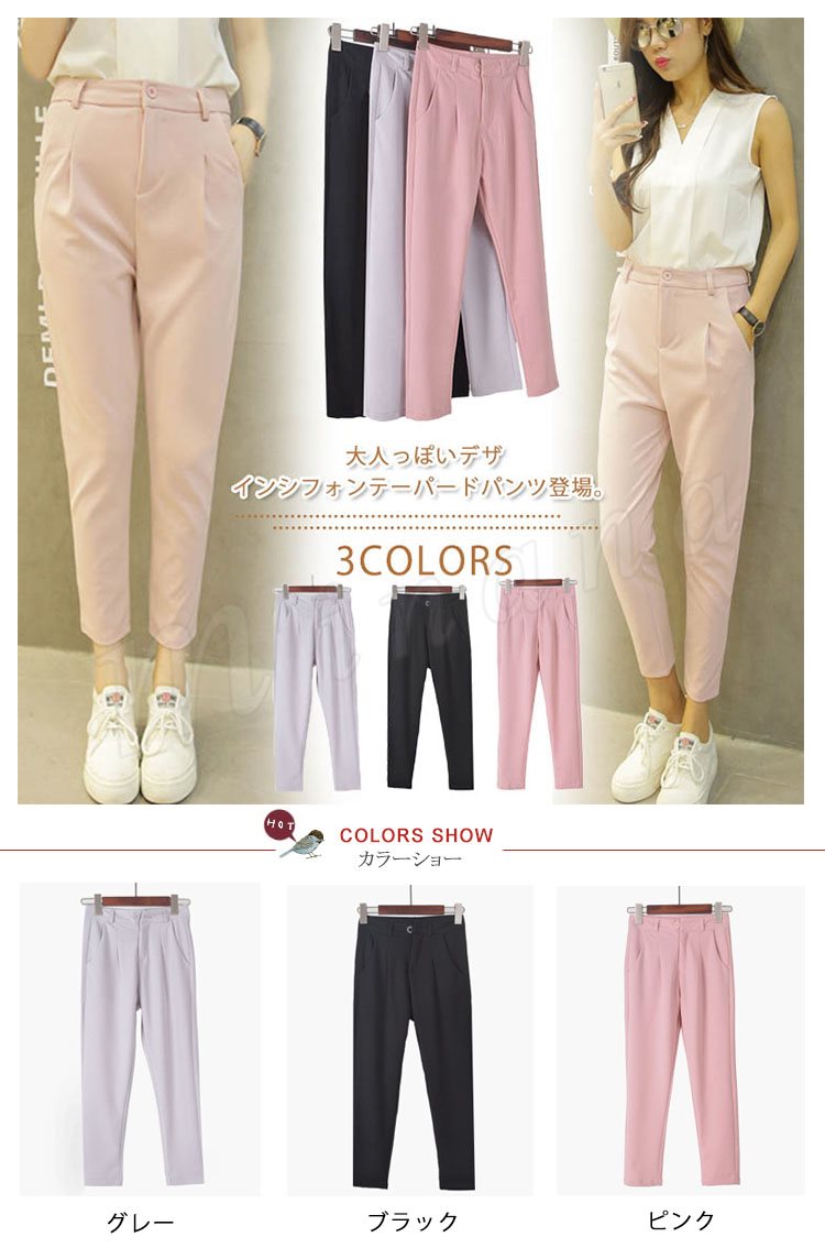 大人っぽいデザインシフォンテーパードパンツ登場。