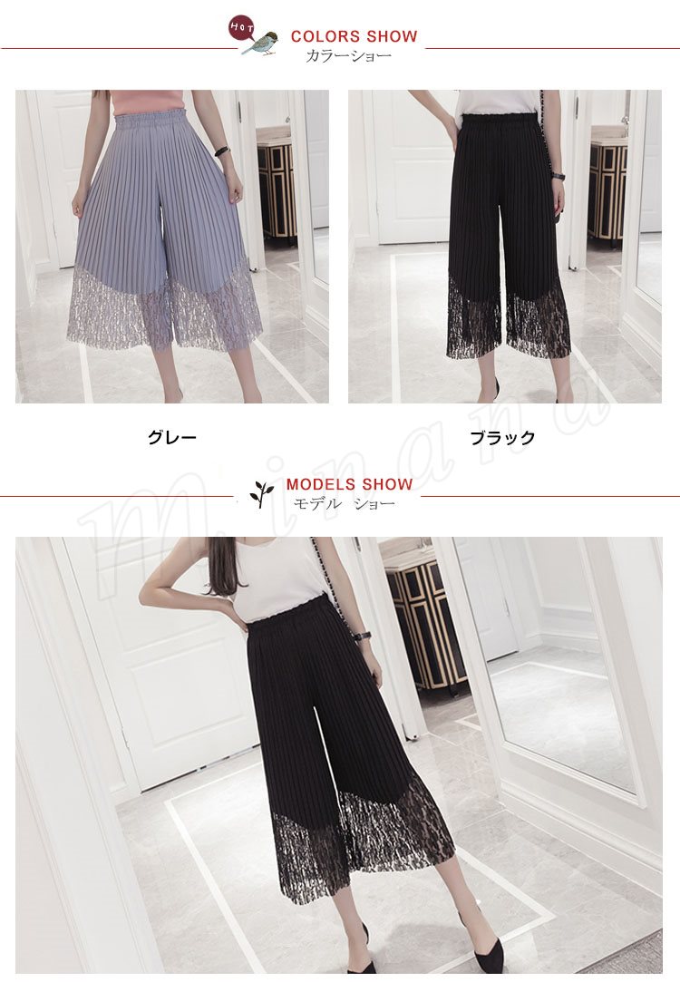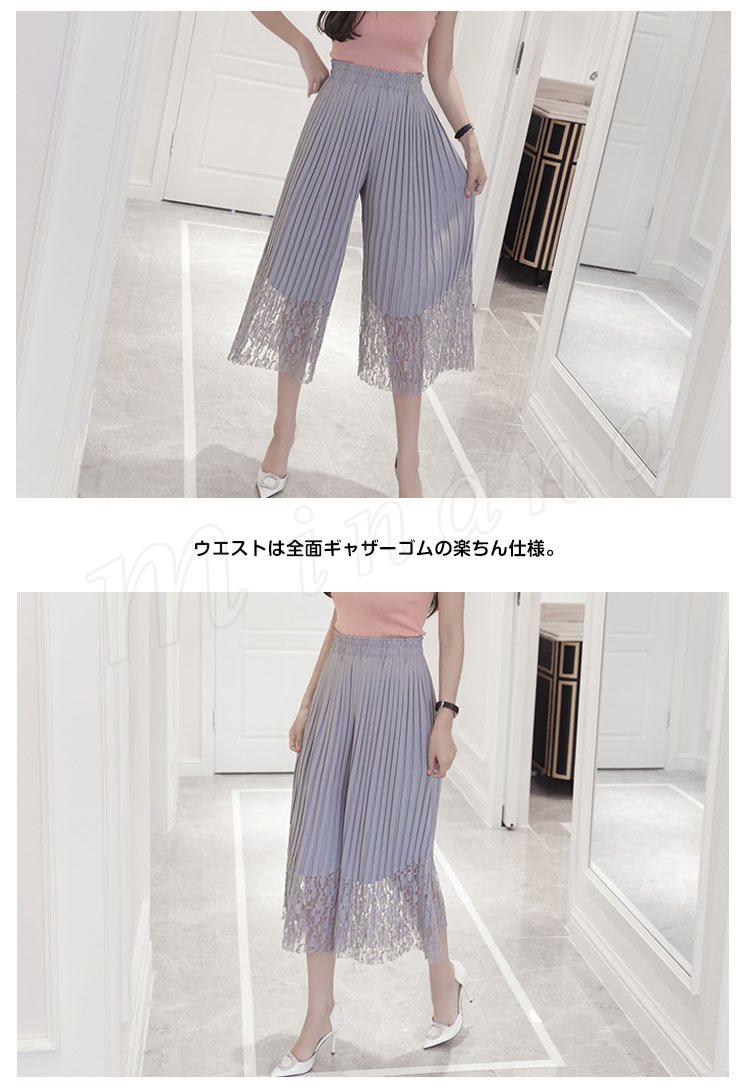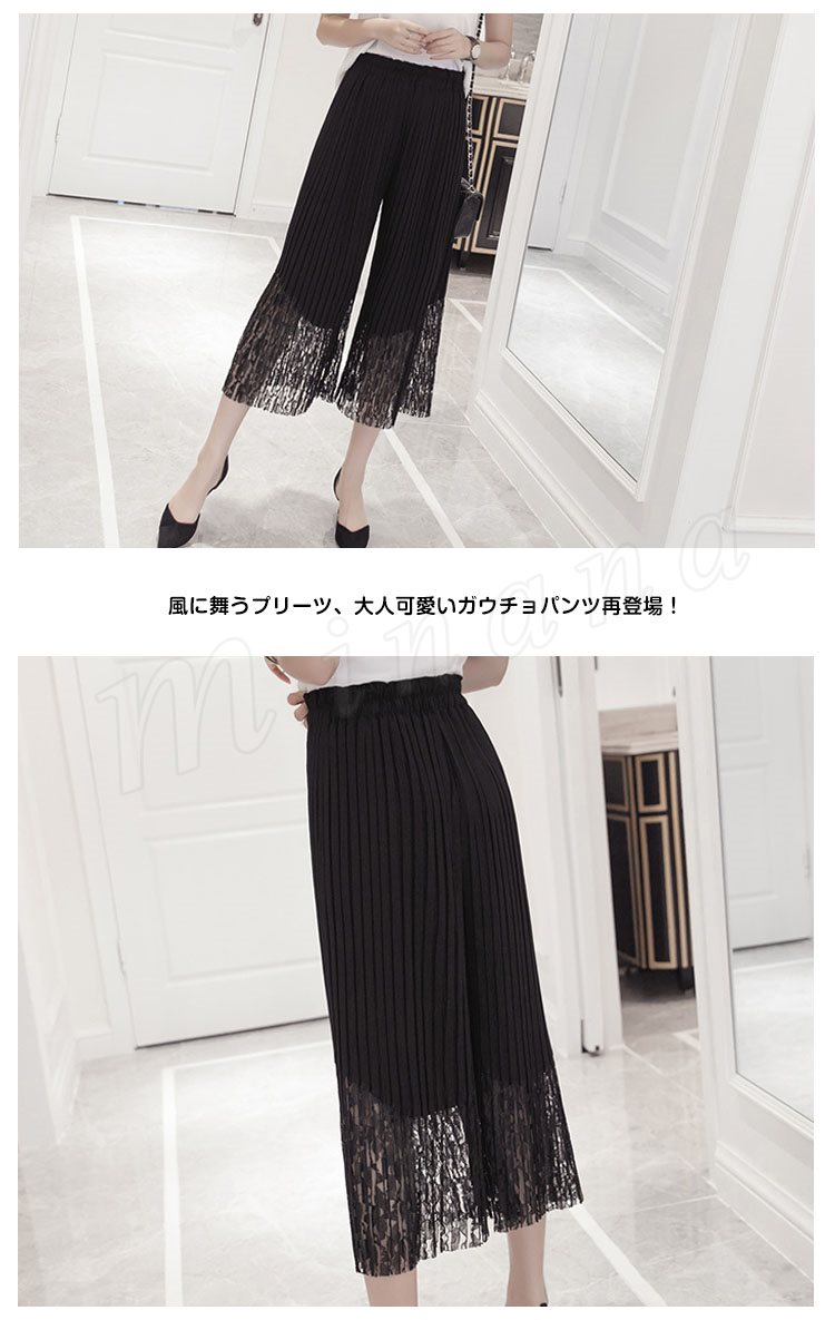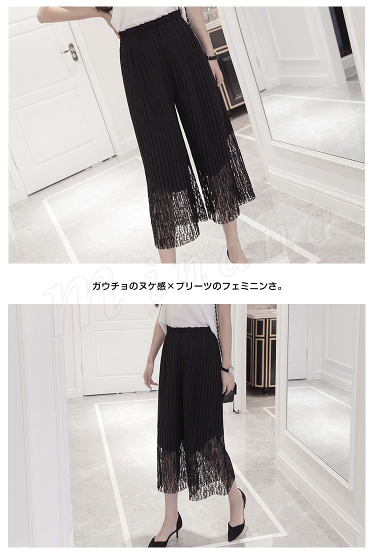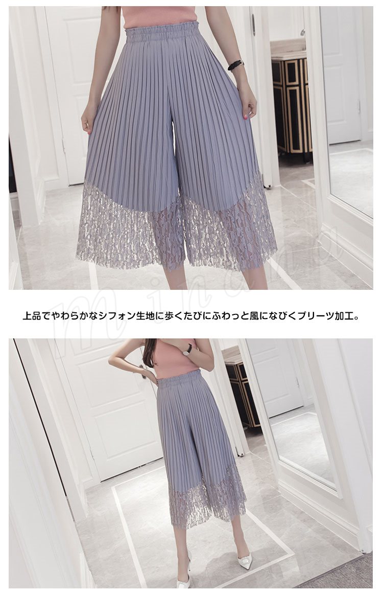 裾透けレース切り替えはチラ見せ効果を◎ガウチョパンツ シフォンガウチョ レース切り替え ストレート 九分丈パンツ シフォン ワイドパンツ プリ