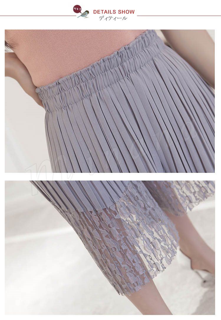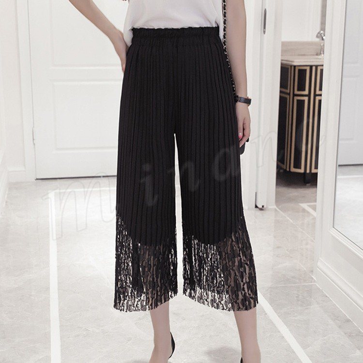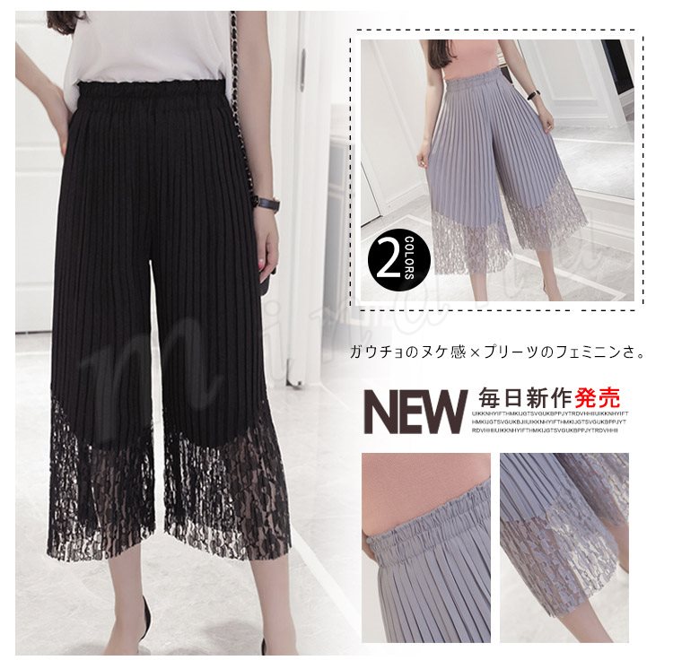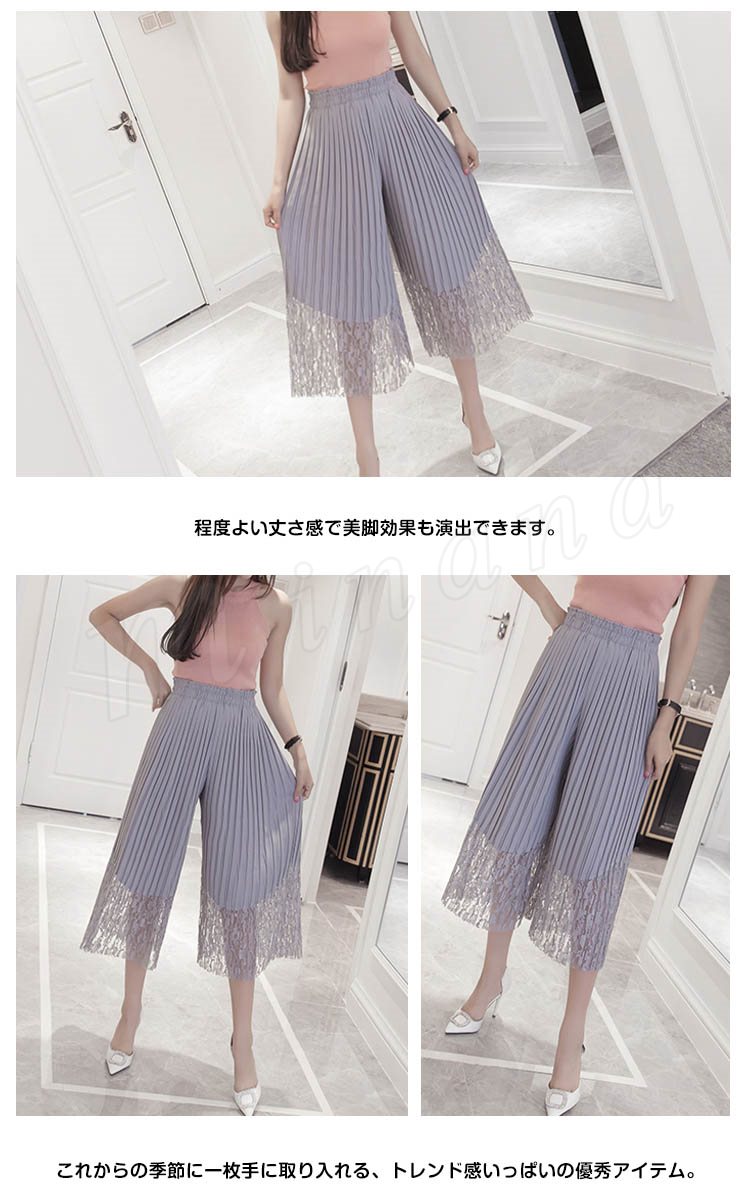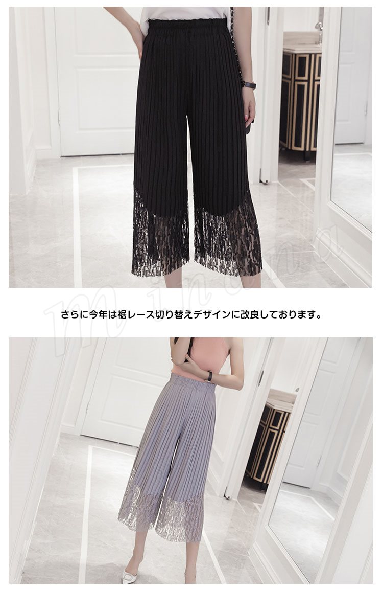 裾透けレース切り替えはチラ見せ効果を◎ガウチョパンツ シフォンガウチョ レース切り替え ストレート 九分丈パンツ シフォン ワイドパンツ プリ