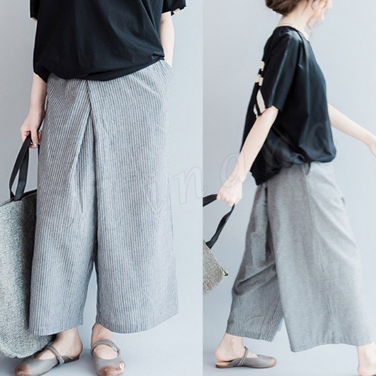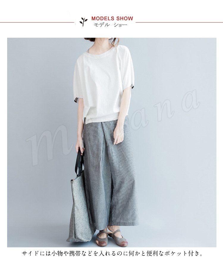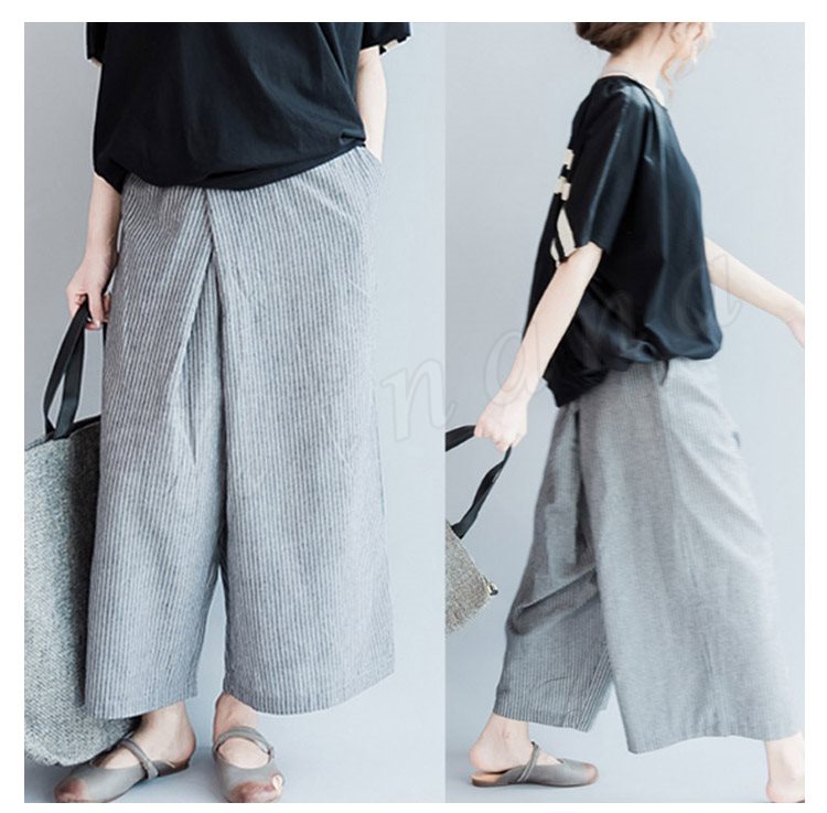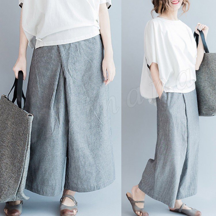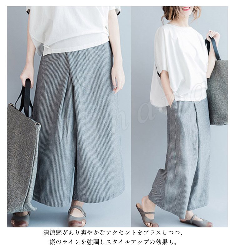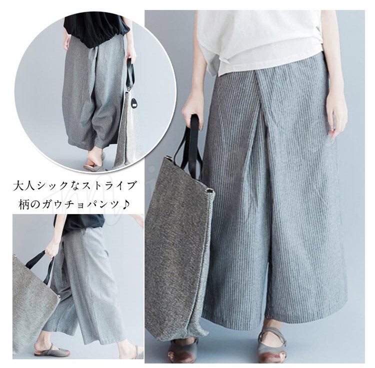 レディース ボトムス ガウチョパンツ ワイドパンツ ロングパンツ ストライプ スカーチョ スカンツ ナチュラル キュロット 3サイズ M L XL